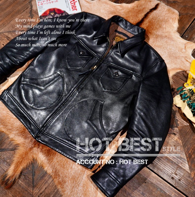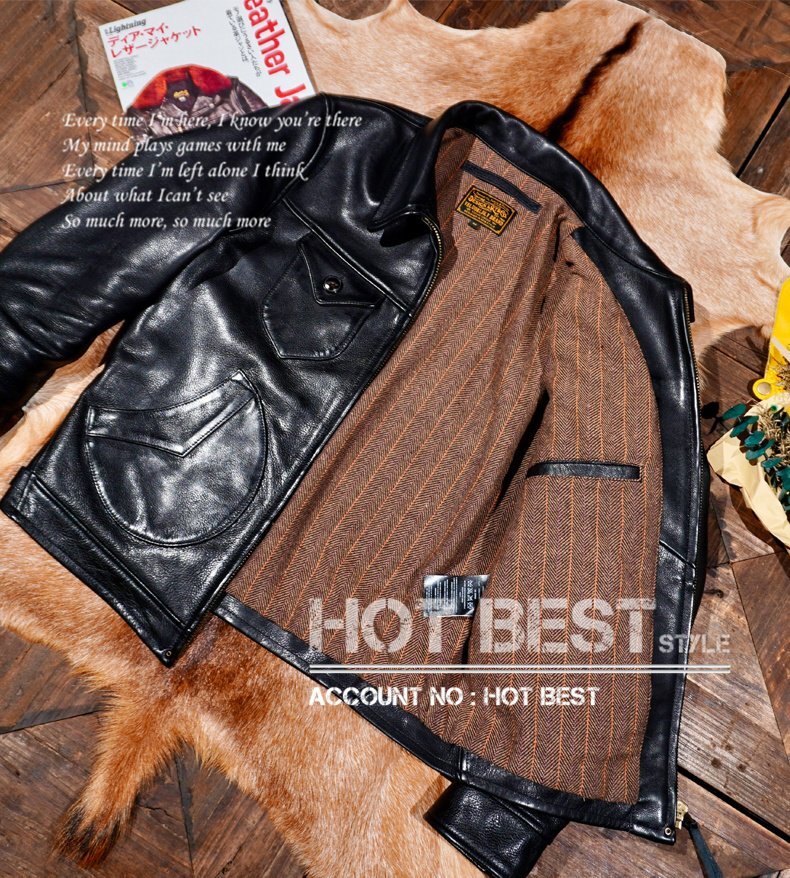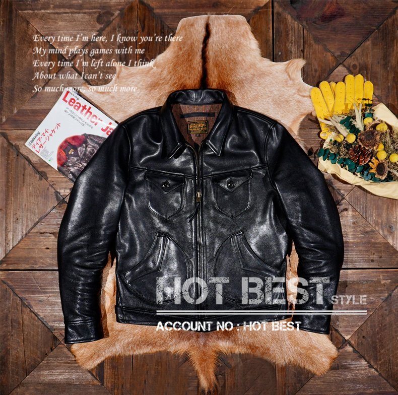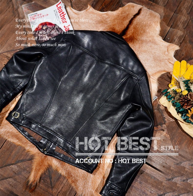 1.5mm カウハイド 復刻30'sスタイル ヴィンテージ 革ジャン シングルライダース レザージャケット トスカーナ植物鞣し革 牛革 Y1417/XL