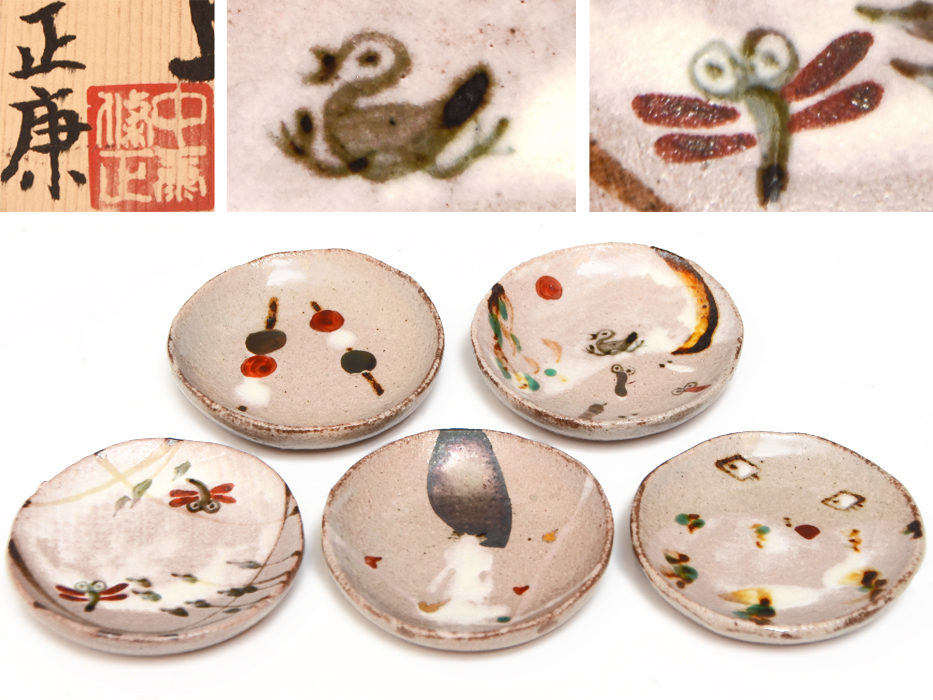 根ノ鼻窯 中條正康 (造) 絵替 色絵 皿 5客揃 共箱 小皿 豆皿 銘々皿 菓子皿 手塩皿 和食器 懐石道具 |