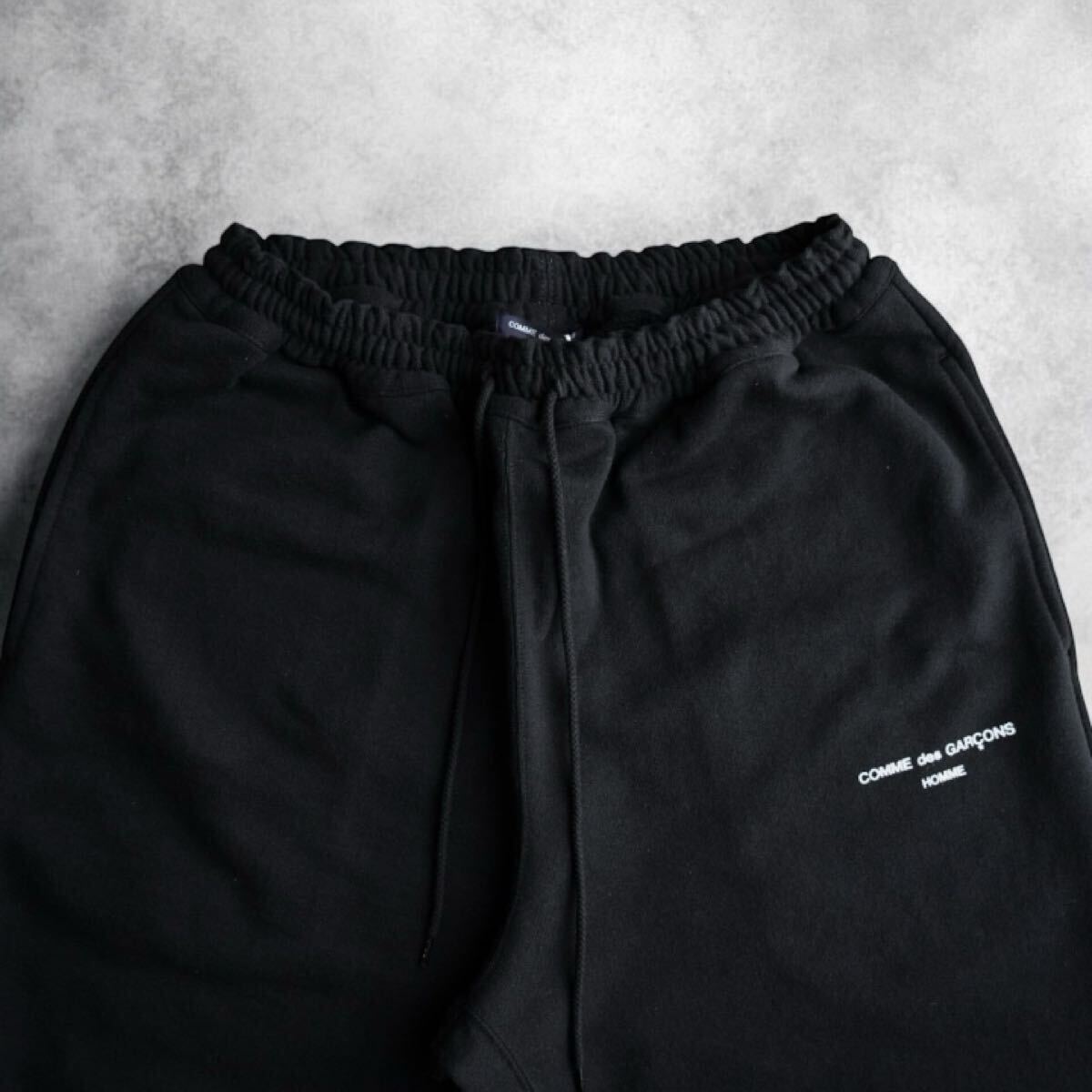 フロント左ポケット下に「COMME des GARCONS HOMME」のプリント入り。柔らかい裏毛スウェット素材で履き心地が良く、タウンユースからリラックスシーンまで幅広く活躍します。