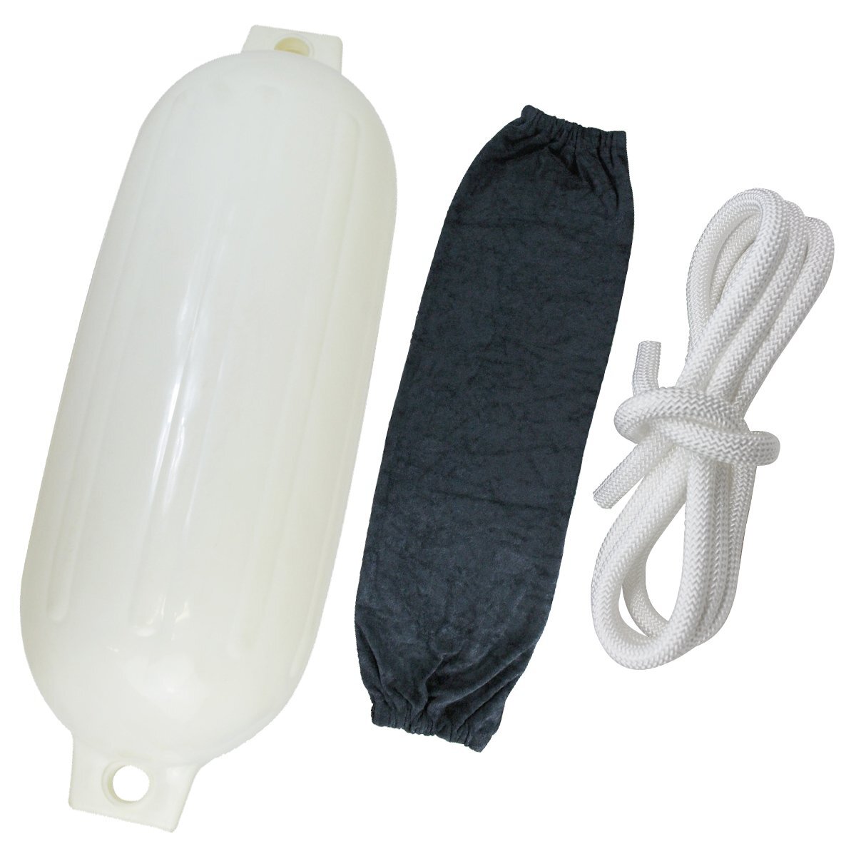 【新品即納】『3種×1セット』ボートフェンダー 680×240mm&黒カバー&ロープ 白 2m 船 浮き ブイ フロート 係留ロープ