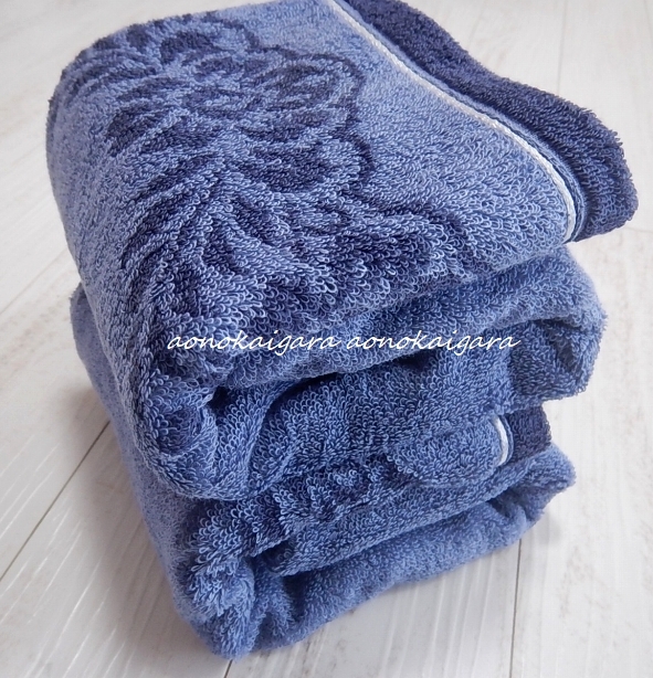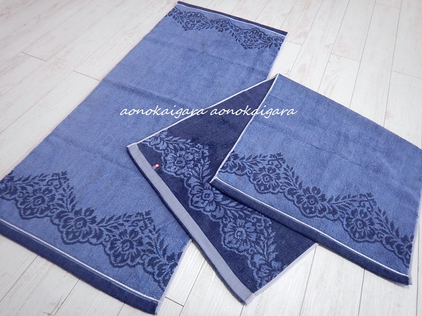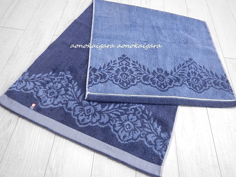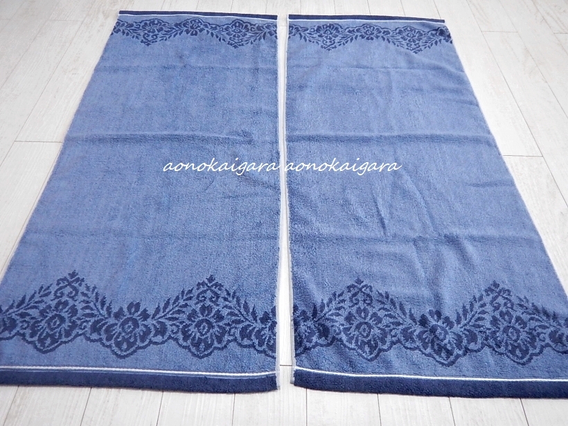 新品◆今治タオル◆高級綿◆ふわふわ◆柔らか◆ラグジュアリー◆ダマスク◆コンパクトサイズ◆バスタオル2枚◆45×100◆ネイビー系