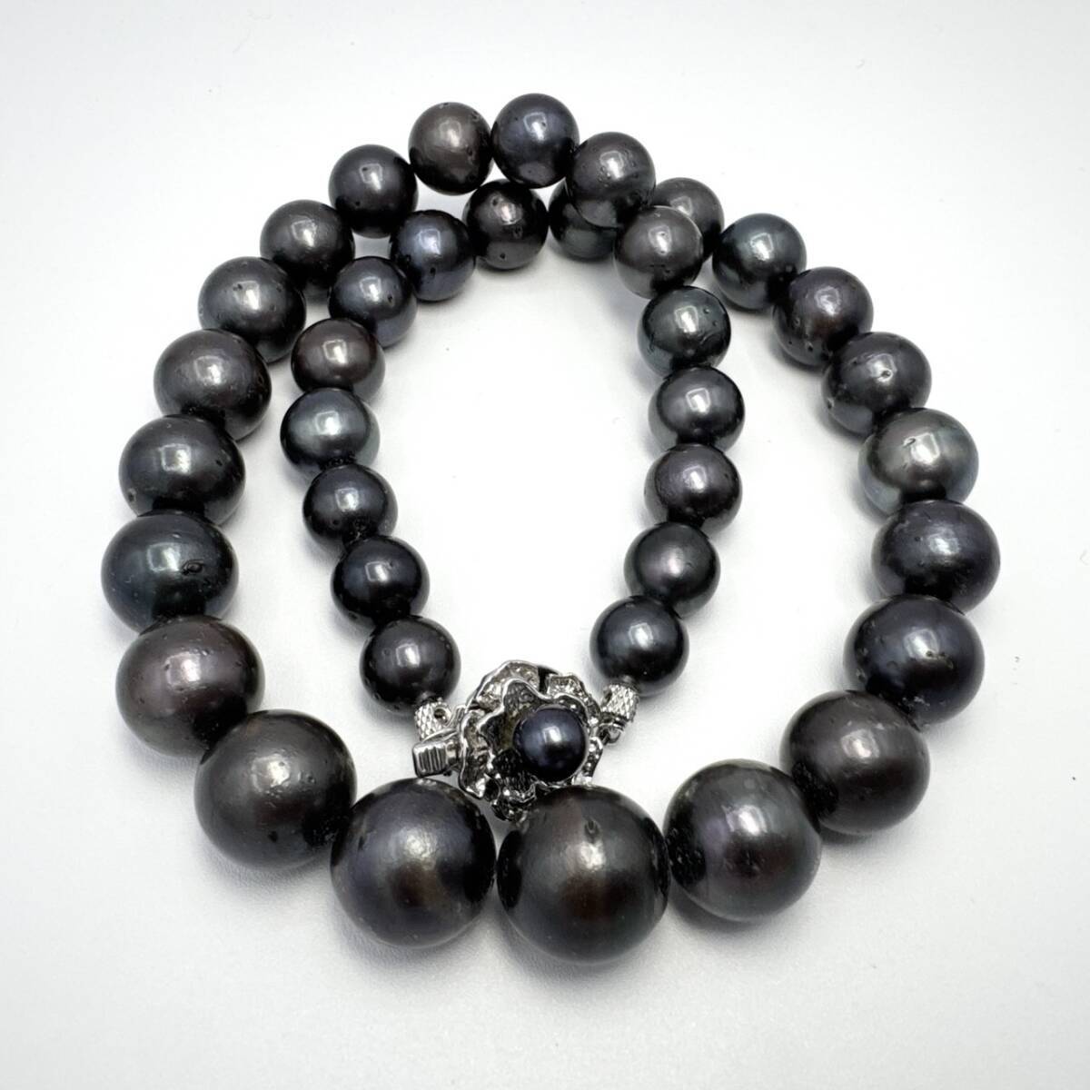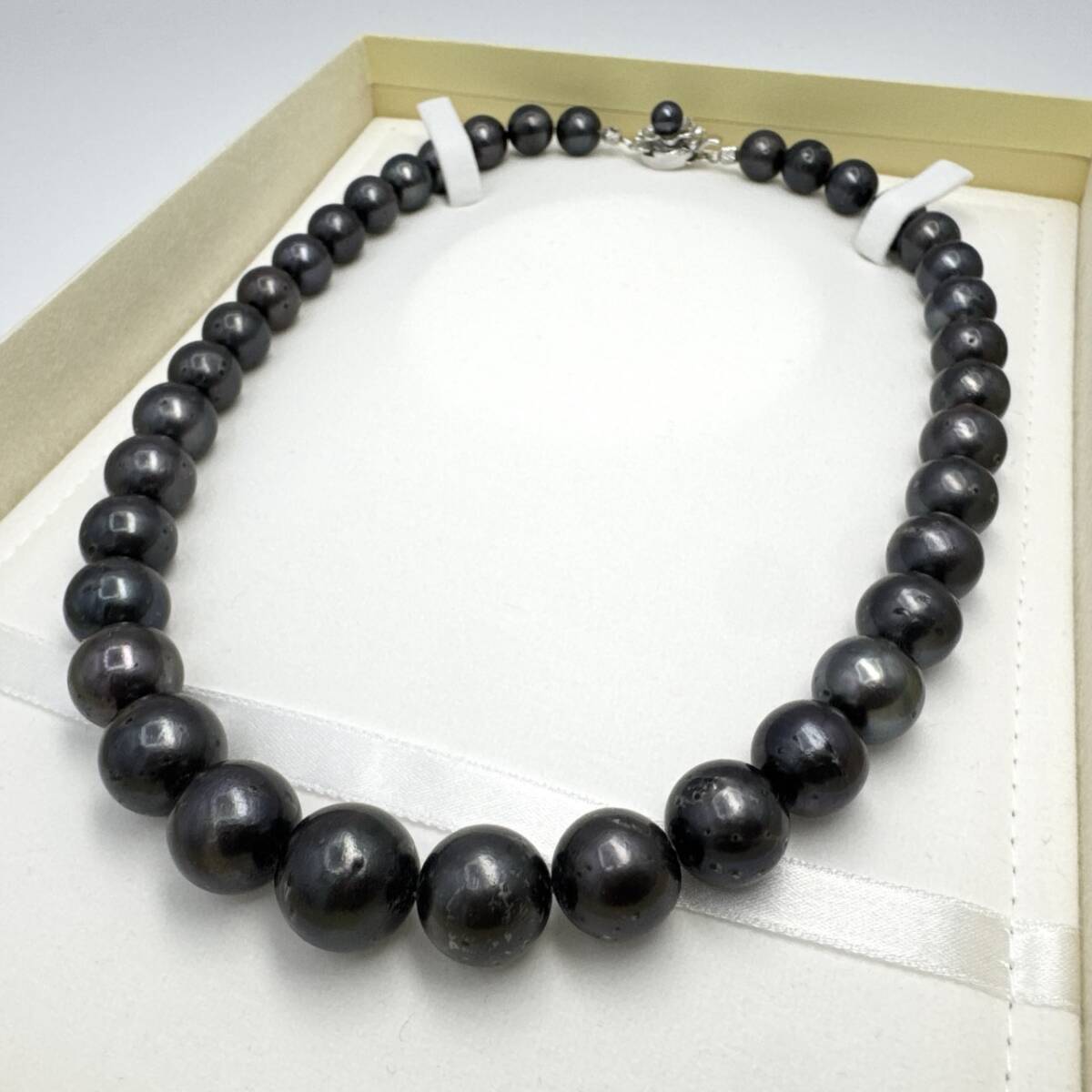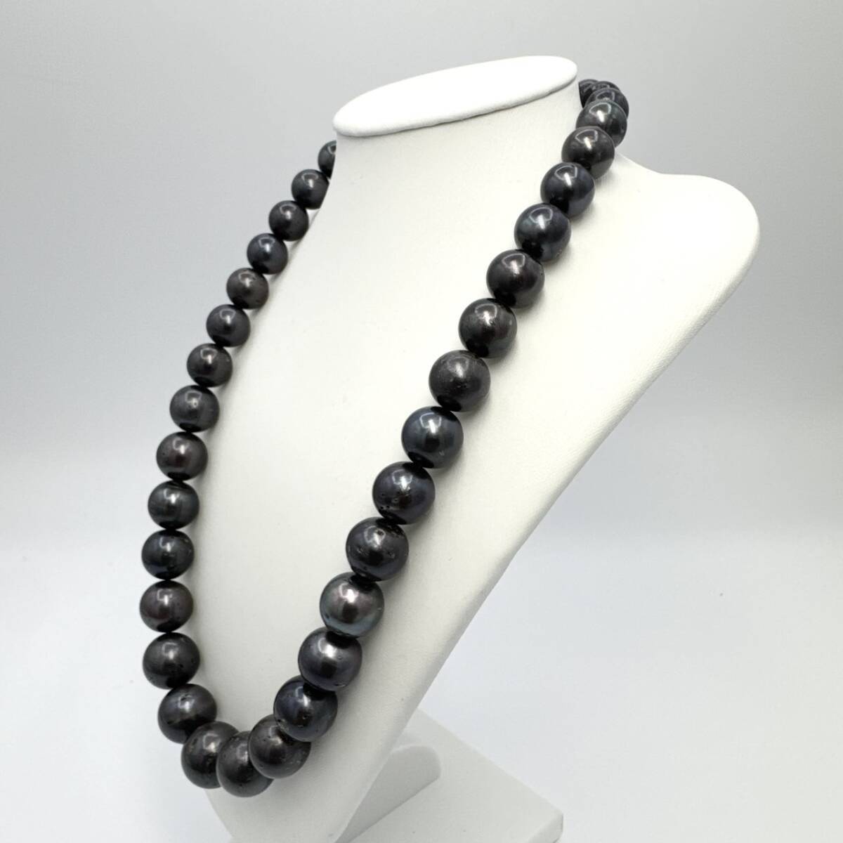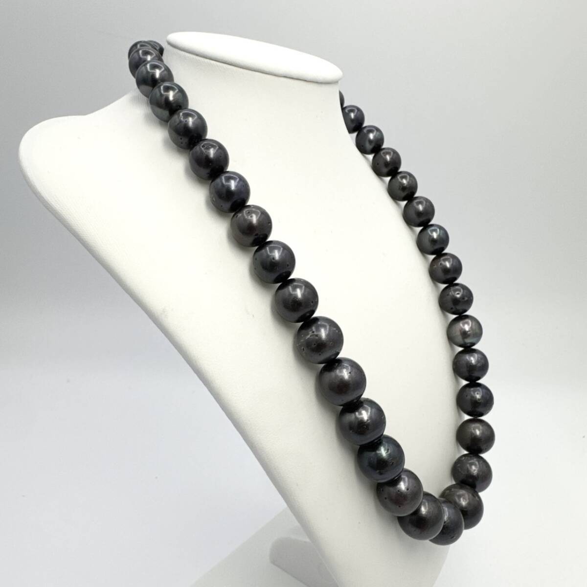 ● 【テリ強 大珠】 オーロラピーコック 9.5-14.1mm 南洋黒蝶真珠 ネックレス 45.0cm 86.8g クロチョウ パール 2SEND-15500-18388