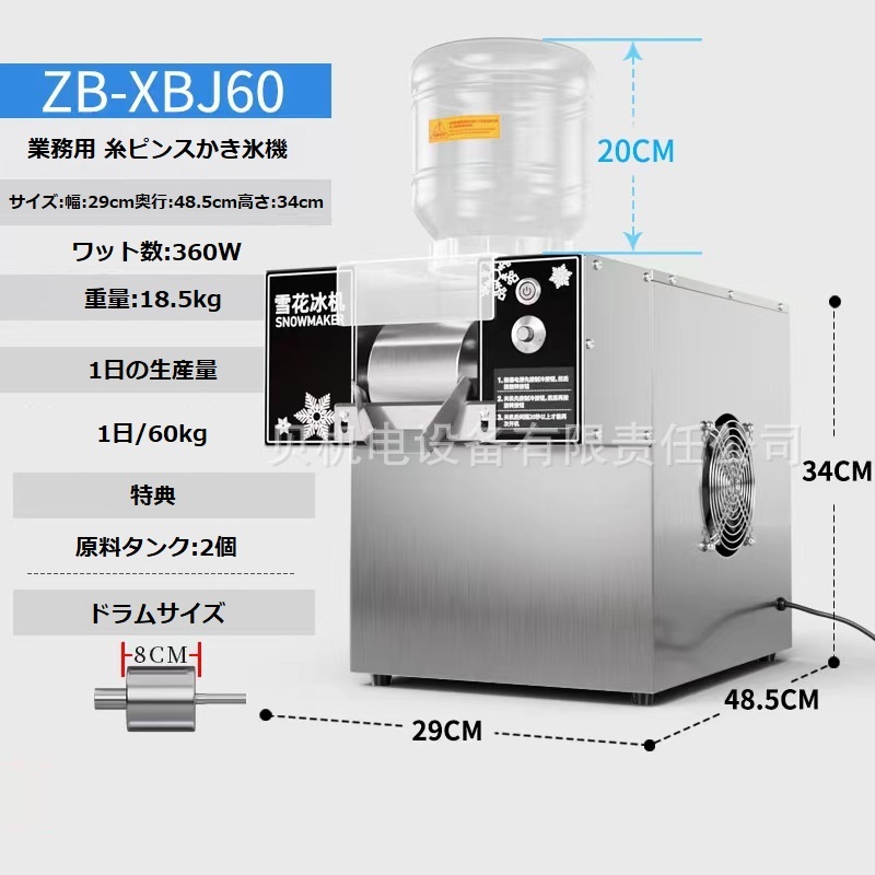 【氷いらずで“ふわふわ”かき氷が作れる!】 韓国で人気の糸ピンスをご家庭でも楽しめる本格マシン! 冷凍牛乳やジュースを使って、綿あめのような新食感スイーツが簡単に作れます 【商品内容】 ・機械本体 ・専用タンク ×2 ・お試し原料付き ・変換プラグ付き(日本でも使用OK) 【商品詳細】 ・状態:新品(動作確認のため試運転済み) ・サイズ:約 幅29cm × 奥行48.5cm × 高さ34cm ・重量:約18.5kg ・電圧:110v(60Hz) ・消費電力:360w ・生産量:1日あたり最大60kg 【おすすめポイント】 ・ 氷が不要!冷凍した牛乳・ジュースをそのまま使える ・ 韓国カフェ風の「糸状かき氷」が作れる ・ おうちカフェ、スイーツ好き、イベント出店にも◎ ・ 見た目も映えて、インスタ・TikTokでも大人気 【発送について】 ・らくらくメルカリ便で発送予定 ・1〜2日以内に迅速発送いたします 【ご注意】 ・即購入OKです! ・質問などあればお気軽にコメントください