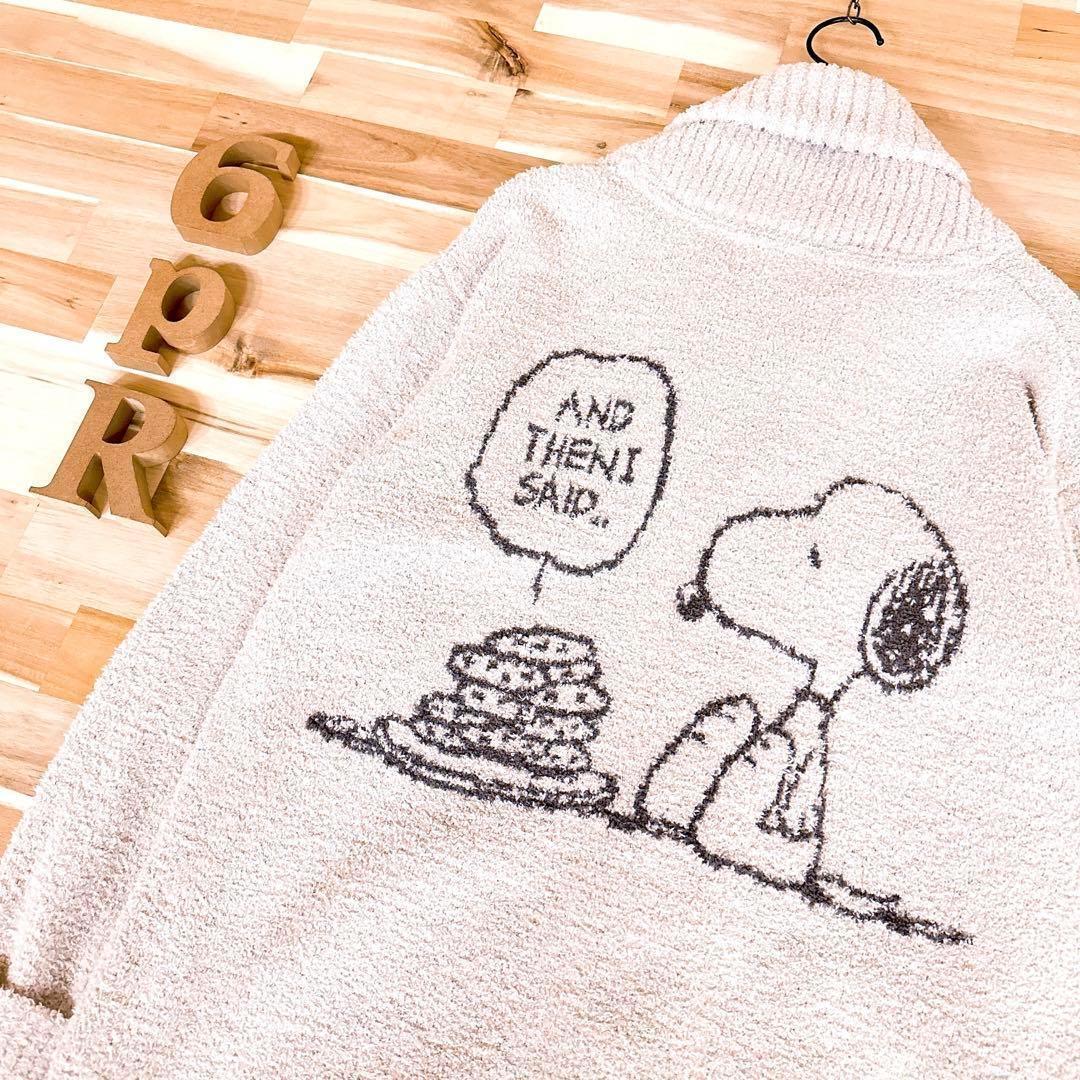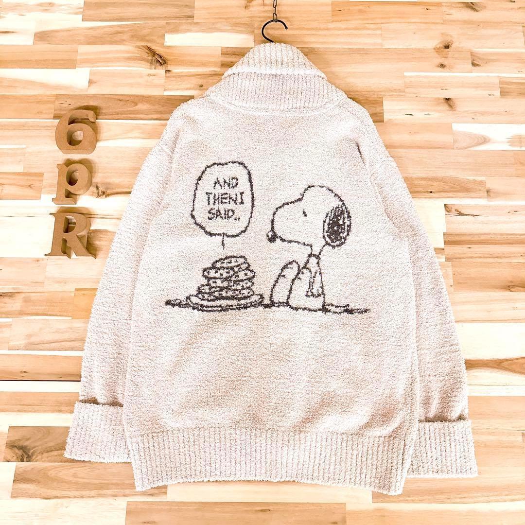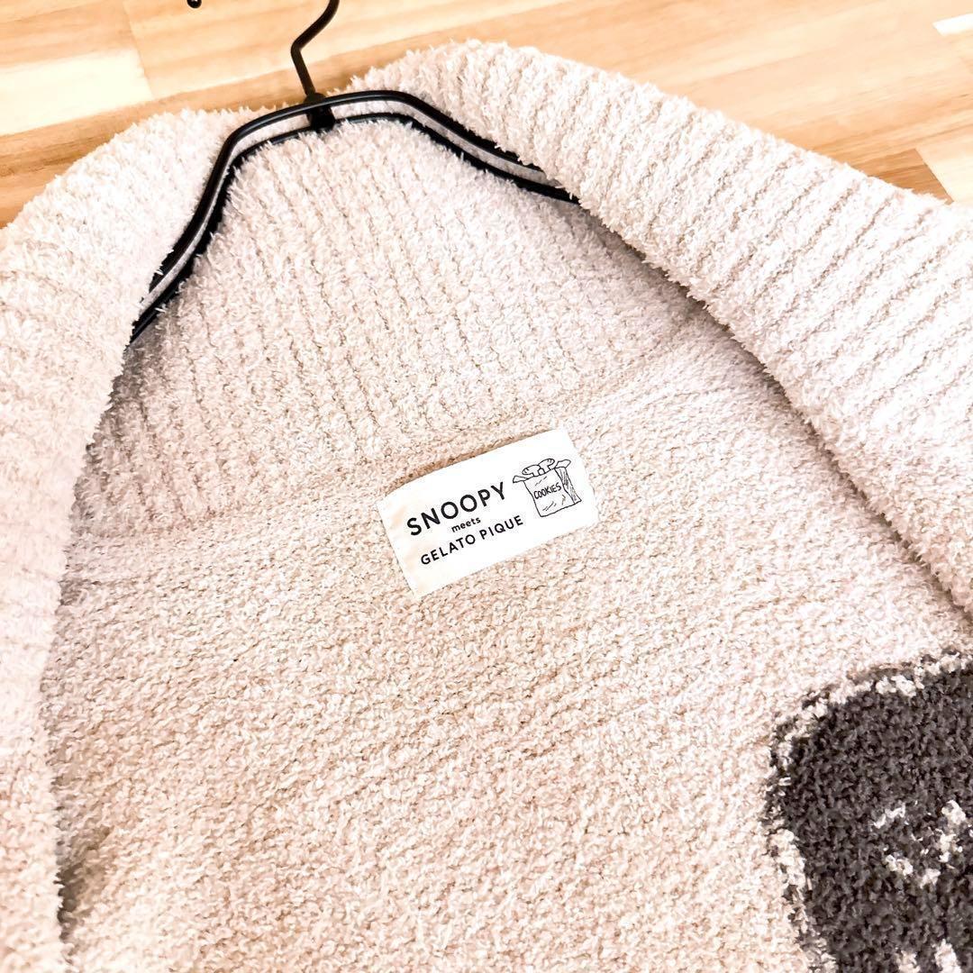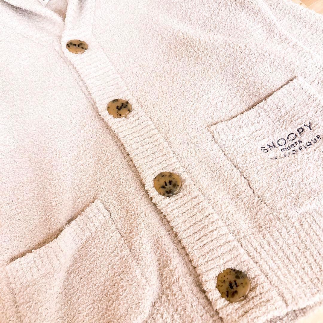 * ベビモコ ジャガード ショール カーディガン / PUNT195027 *ふんわりとしたベージュトーンがやわらかな印象を与え、ぬくもりのある優しい存在感を演出してくれる一着。オリジナルのクッキー風ボタンや背面に描かれたスヌーピーのグラフィックが目を惹き、ゆったりとしたシルエットが柔らかく心までリラックスさせてくれるgelato pique × SNOOPYコラボのカーディガンです。※LGスタイラーにて除菌リフレッシュ・スチームクリーニング済みです。