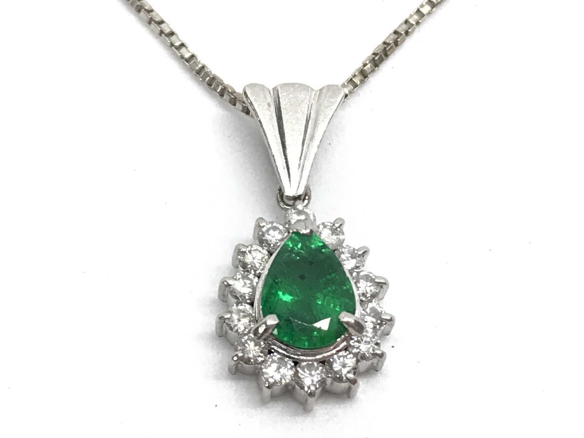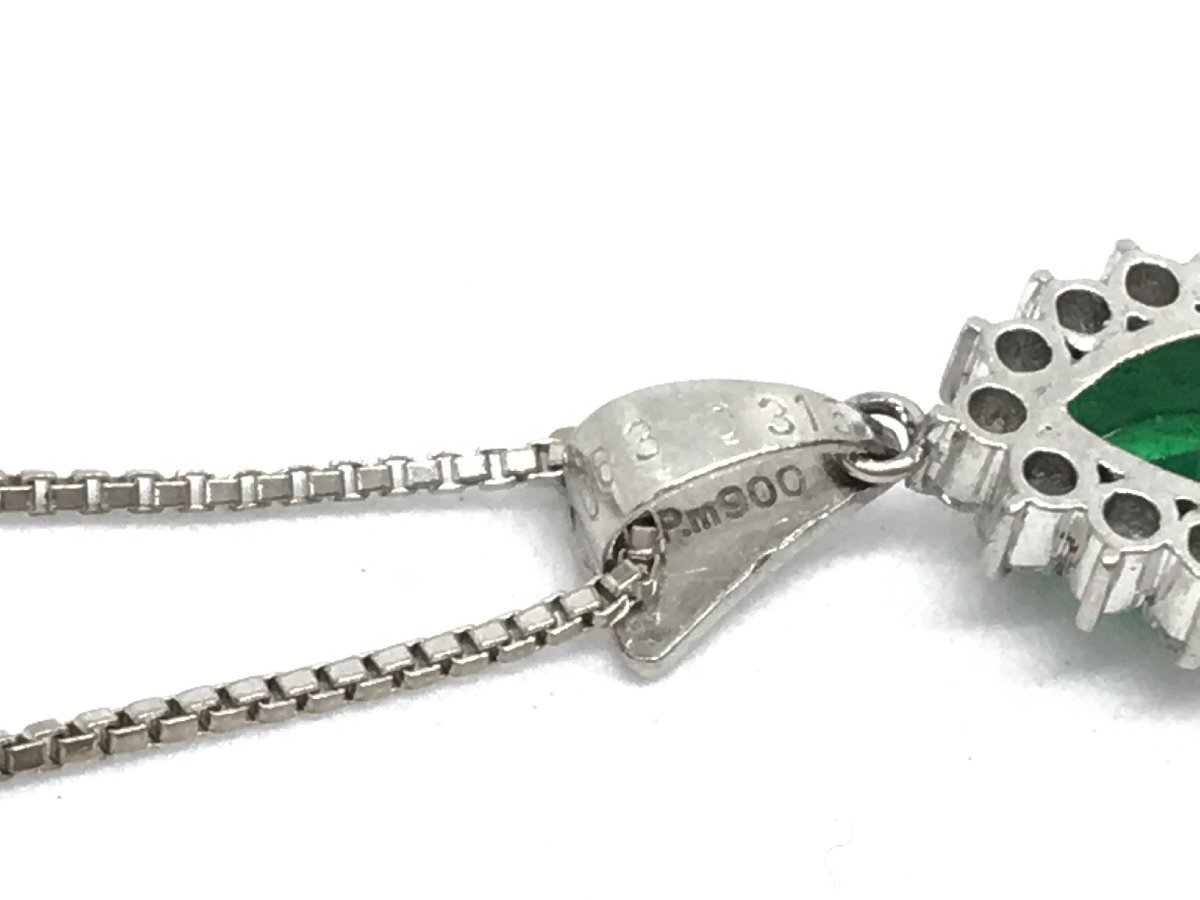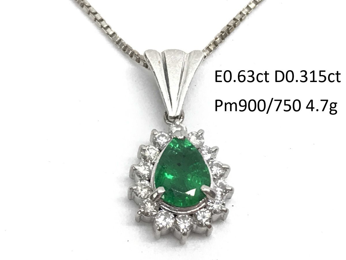 プラチナ ネックレス 宝石 エメラルド ダイヤモンド アクセサリー E0.63ct D0.315ct Pm900/750 4.7g ジュエリー ヴィンテージ ビンテージ