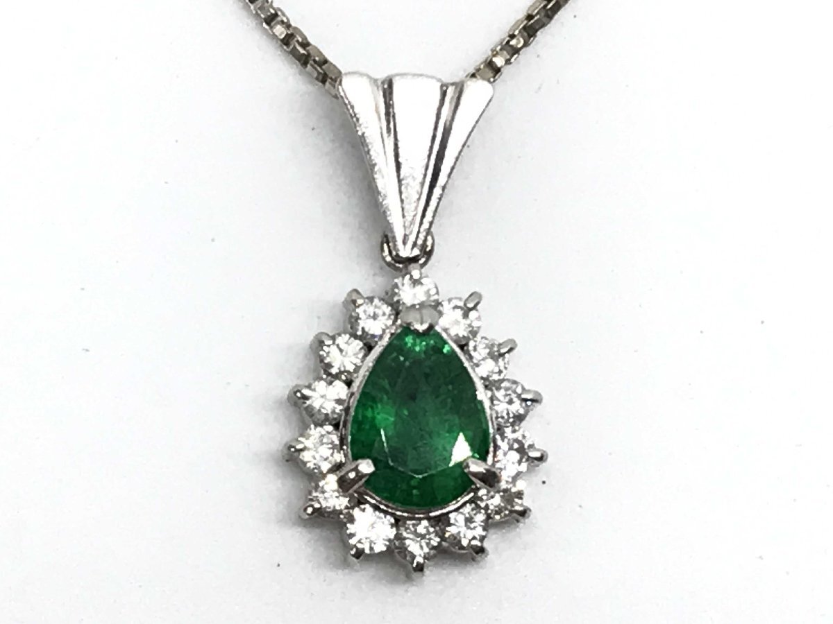 【注意事項】エメラルド評価【色】=B 【テリ】=B 【キズ】=C 【その他】面ヒビ/カケ-極小. ダイヤ評価BC. トップPm900. チェーン750