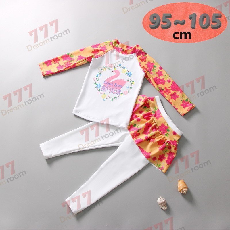 ラッシュガード 水着 上下セットアップ ピンク【L】95-105cm 子供服 女の子 レギンス 長袖 ズボン 日よけ ビキニ 海 プール swi-107