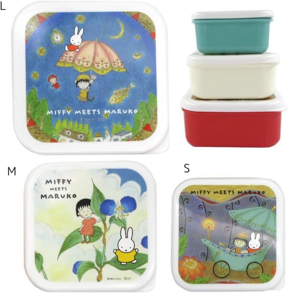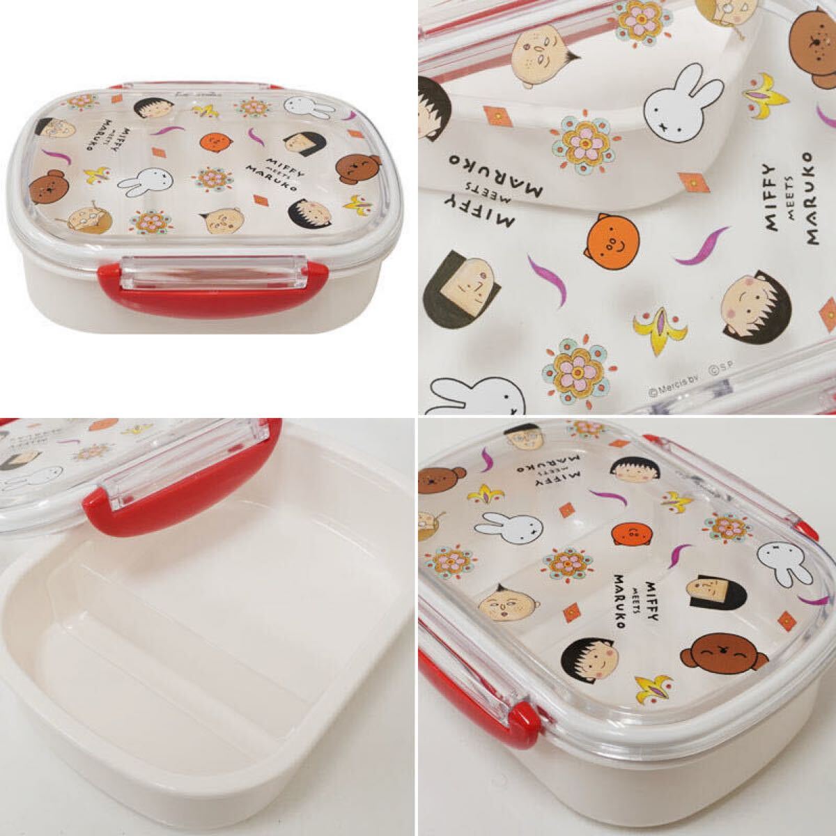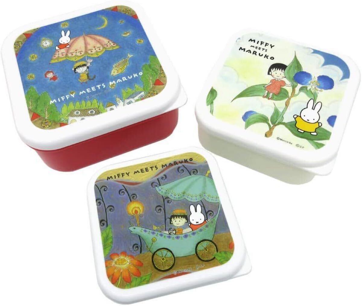 ミッフィーとちびまる子ちゃんのコラボランチボックス&シールケース3ピース&ケース付き箸3点セットです。