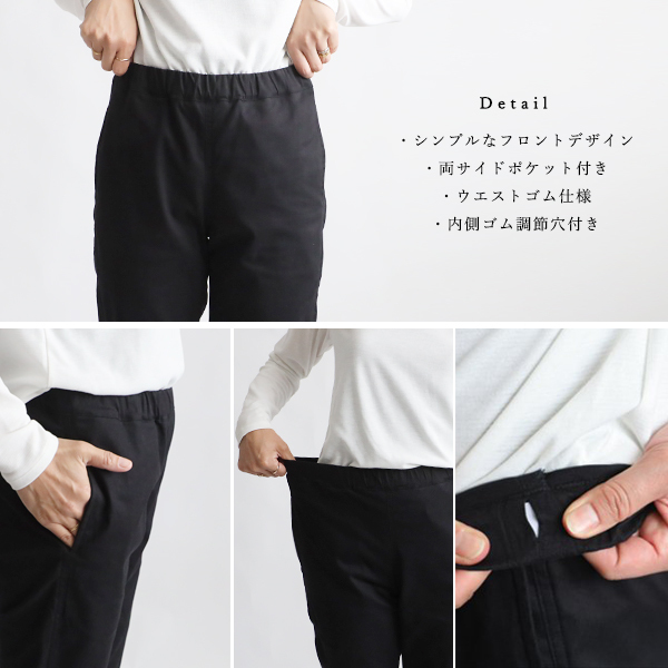 ウエストは楽々ゴム/内側にゴム調節穴。