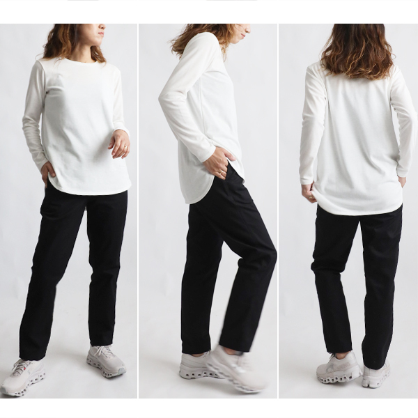 見た目は ほっそり、穿くと ゆったりな不思議な履き心地。