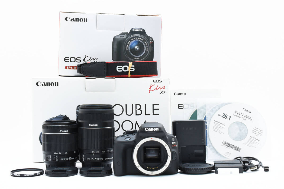 EOS Kiss X7本体と標準ズームレンズ(STM搭載)と望遠ズームレンズのダブルズームキットです。