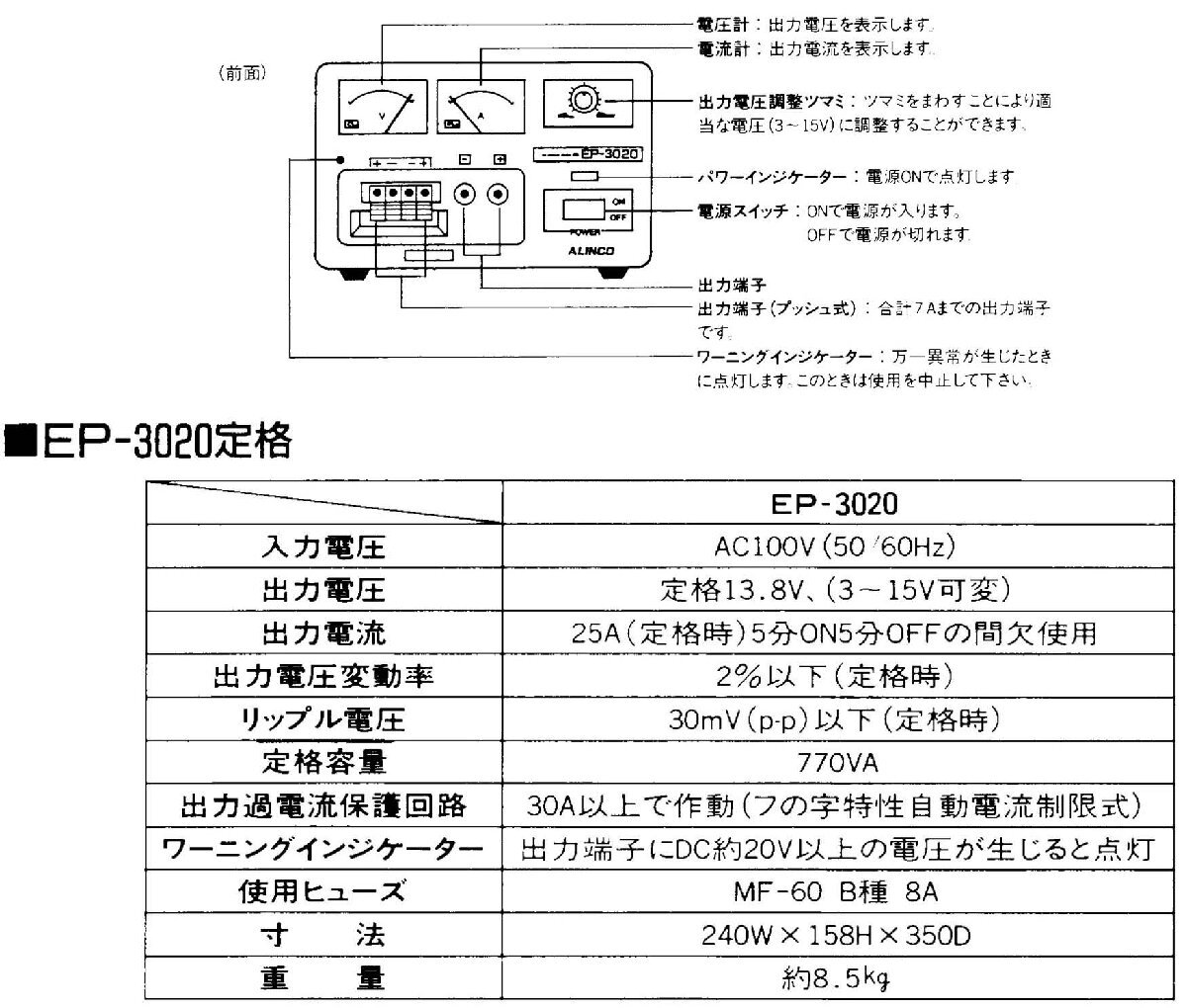 EP-3020【ALINCO】直流安定化電源 Max30A 動作確認済み 現状渡し品 | ||