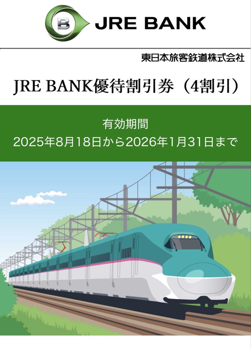 【ご利用方法】 「株主優待/JRE BANK優待割引(片道限定)」にチェックを入れ案内に従い、JRE BANK優待券番号等をご入力ください。 その他詳細については、JRE BANKウェブサイトの「プログラム詳細」をご確認ください。 (https://www.rakuten-bank.co.jp/jrebank/campaign/jreg-tokuten/)