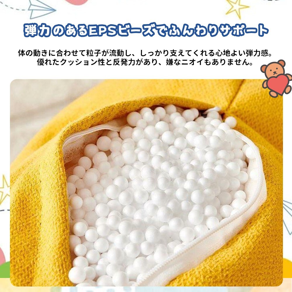 王様のような存在感!見た目も可愛らしく、子ども部屋にぴったりなビ-ズクッションソファ。お子さまが「自分だけの席」として誇らしく感じられるサイズ感です。