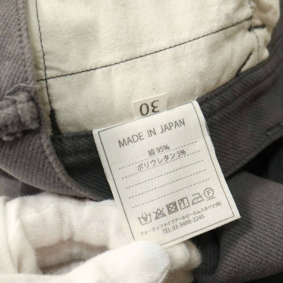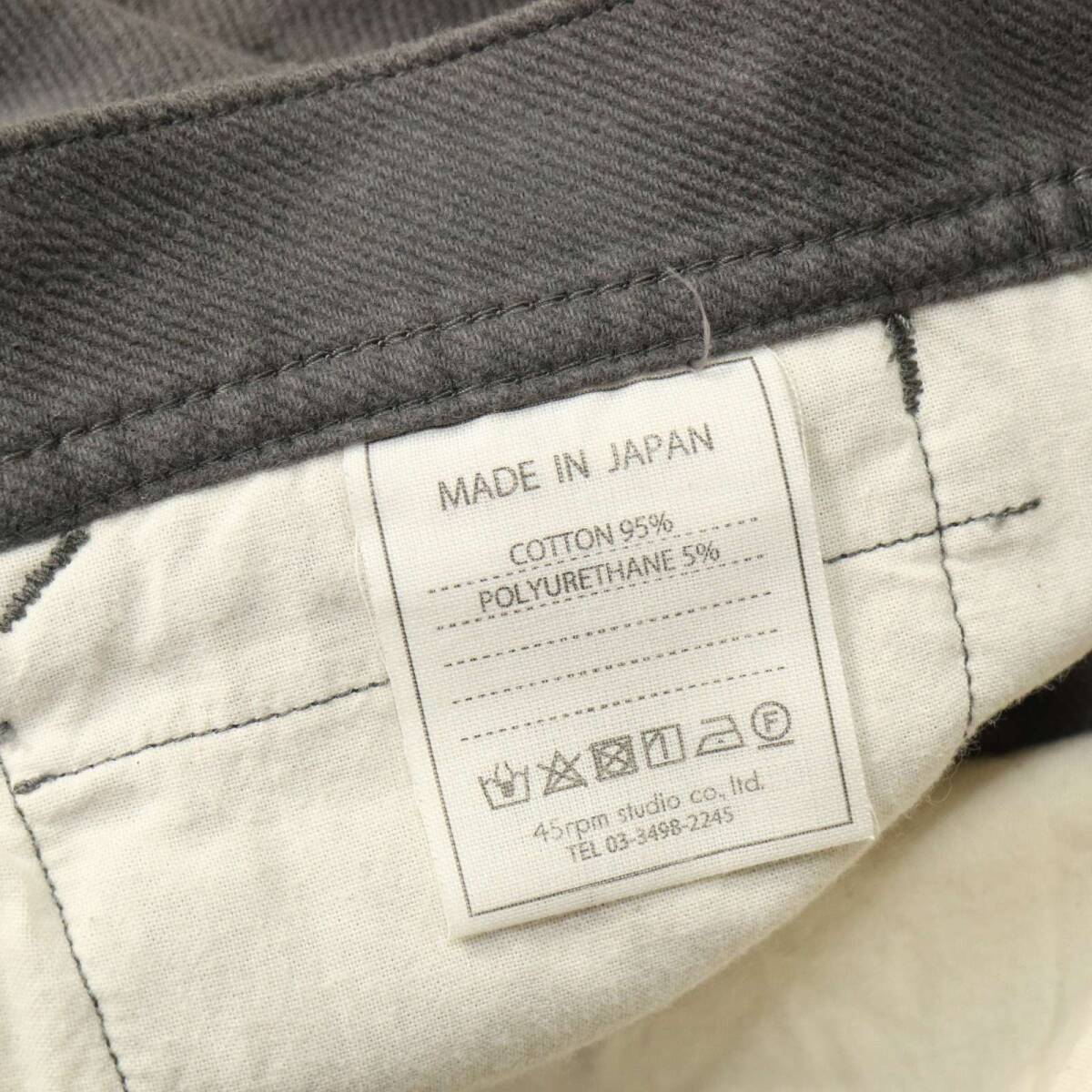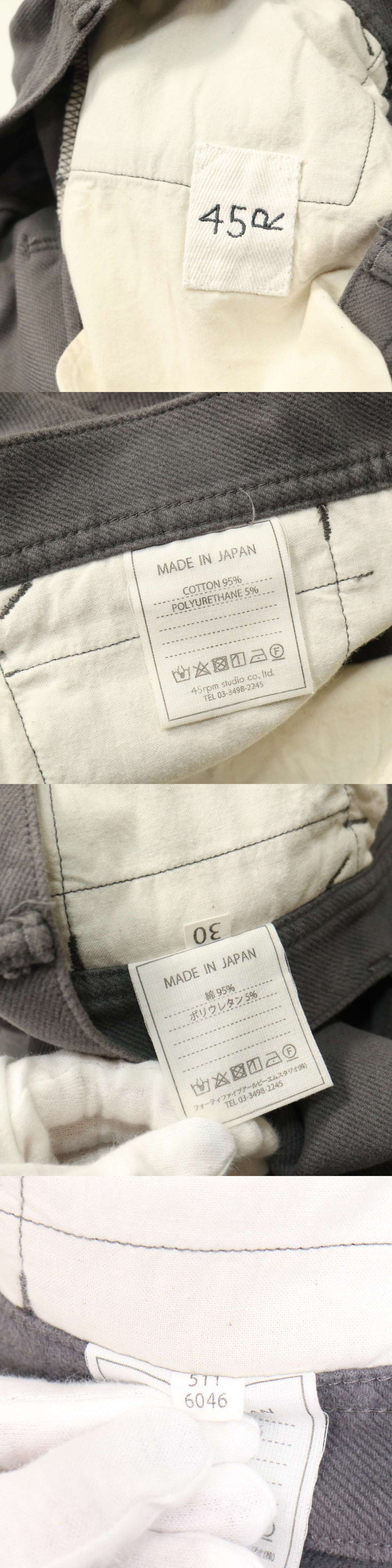 45R 45rpm フォーティーファイブ 5116046 秋冬 ストレッチ★ 起毛コットン ストレート パンツ Sz.30 メンズ グレー 日本製