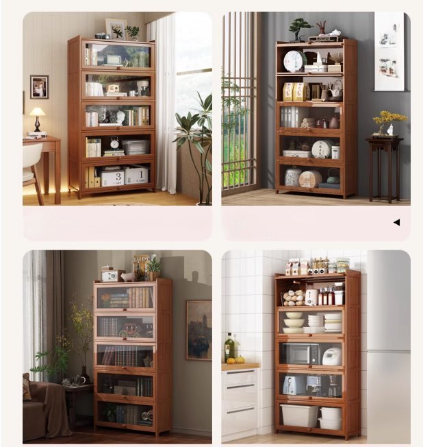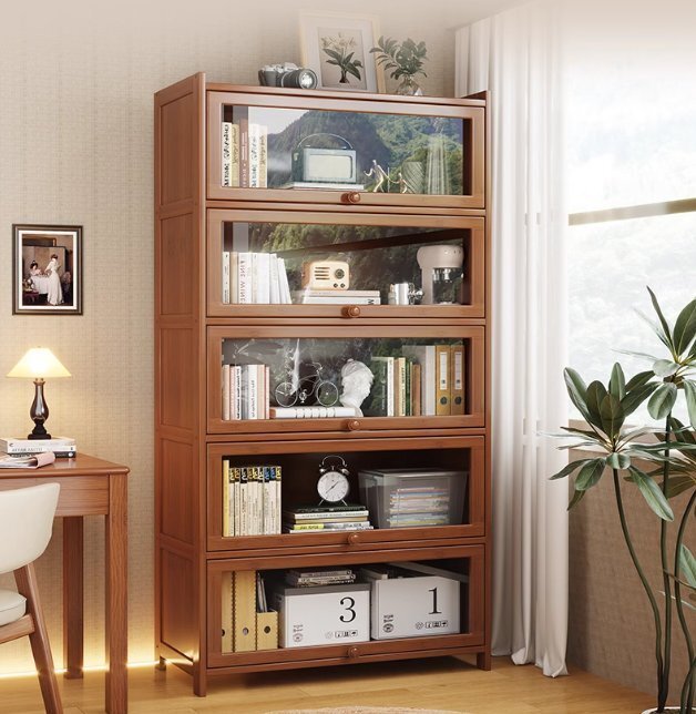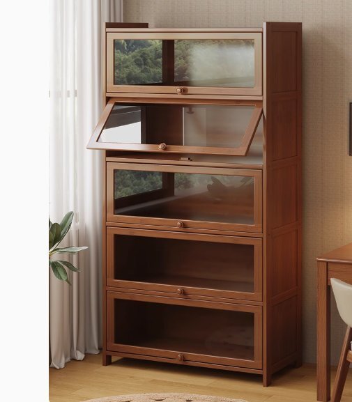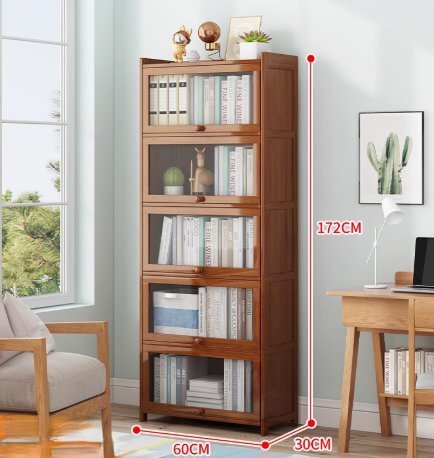 本棚兼収納棚 落地式書棚 収納棚 一体型 壁寄せ用 家庭用 実木製 引き戸付 防塵表示棚