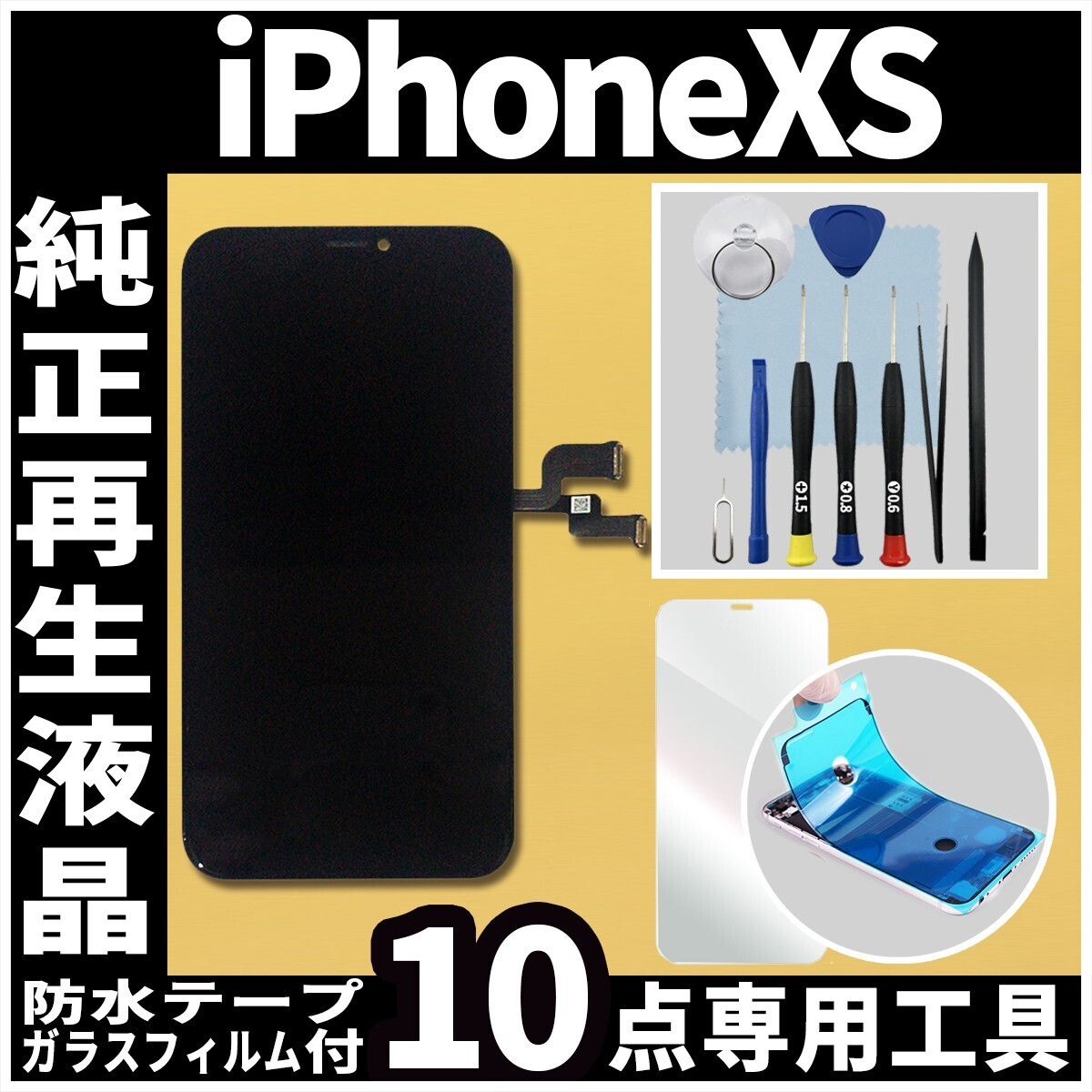 ・フロントパネル 一体型(ガラス・デジタライザ/タッチパネル・LCDスクリ-ン) ・iPhone専用修理交換用工具10点セット (+・★・Y字ドライバー・防水テープ・プラスチックヘラ3種・ピンセット・吸盤・クリーニング用ウエス) | |