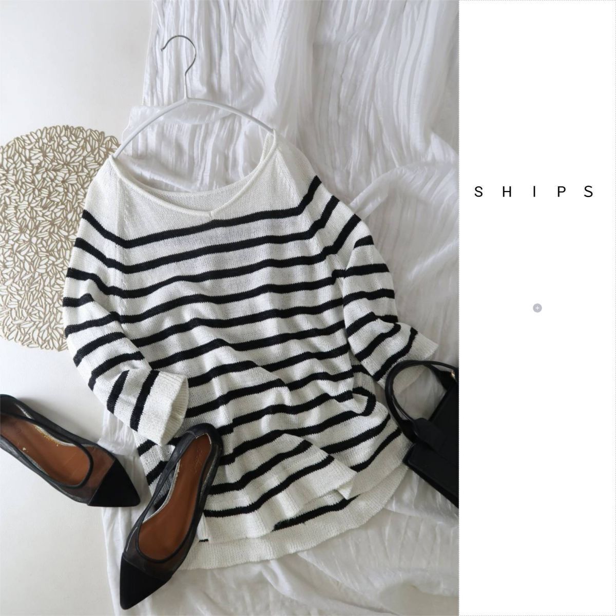 1.5万☆シップス SHIPS☆ペーパーレーヨン Vネックプルオーバー 日本製☆E-M 4782