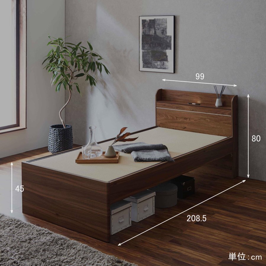 ◆ 商品名 | 畳ベッド シングルベッド 国産畳 棚 LEDライト コンセント 宮付き 13S |