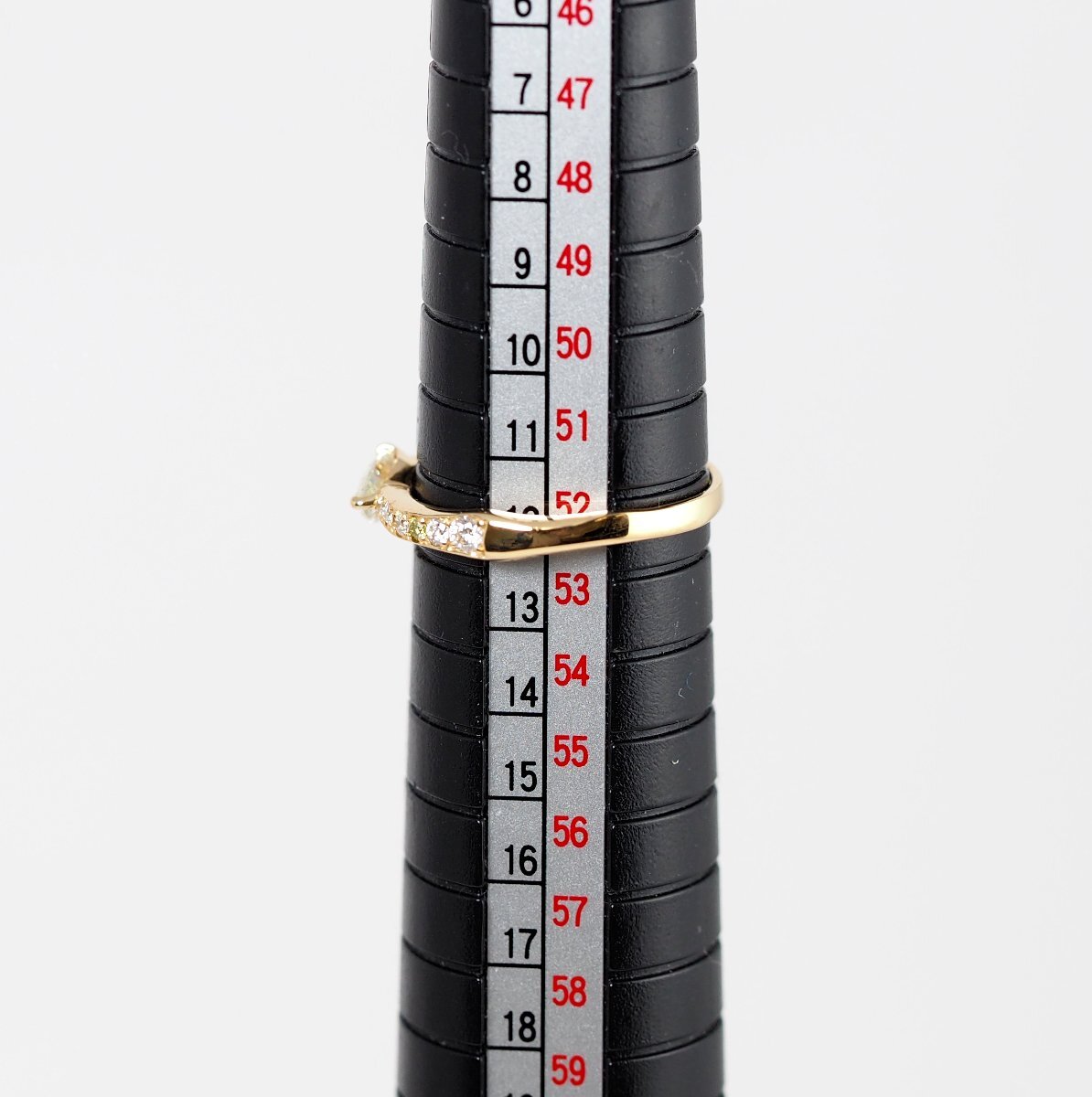 Sirena Azzurro セイレーンアズーロ K18YG ペアシェイプダイヤ0.388ct ダイヤ0.15ct/0.02ct リング 12号 ソーティング付 です。 ペアシェイプダイヤの魅力を存分に楽しめるエレガントなリングです。サイドのアーム部分のメレダイヤがさらなる煌めきをもたらし、爽やかなイエローグリーン系ダイヤがアクセント。対象的な輝き方をする2種類のダイヤモンドが美しく調和しお手元を華やかに演出してくれます。 イエローゴールドに若干の小キズ程度の綺麗な商品です。皆様のご入札お待ちしております。 |