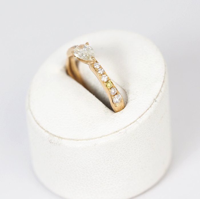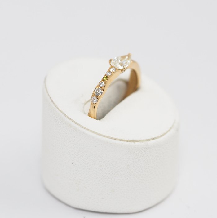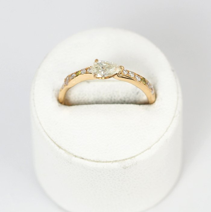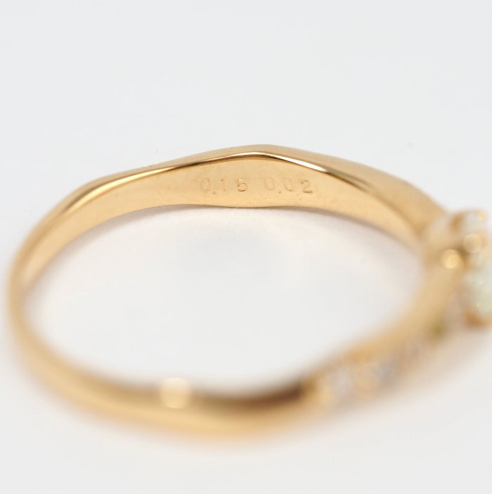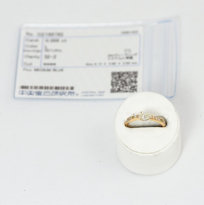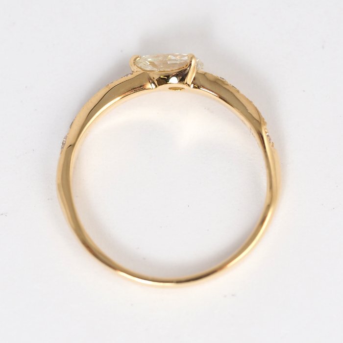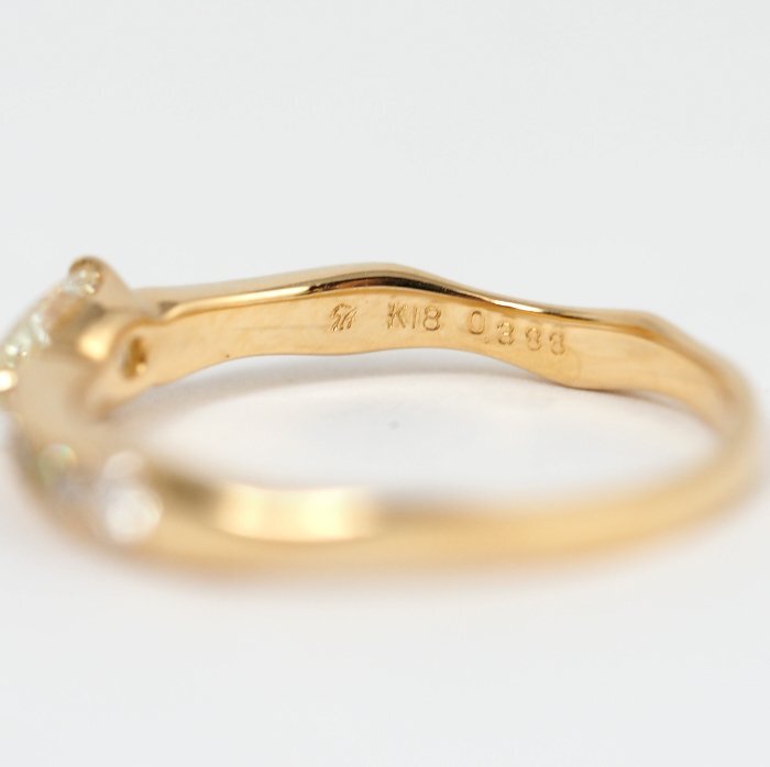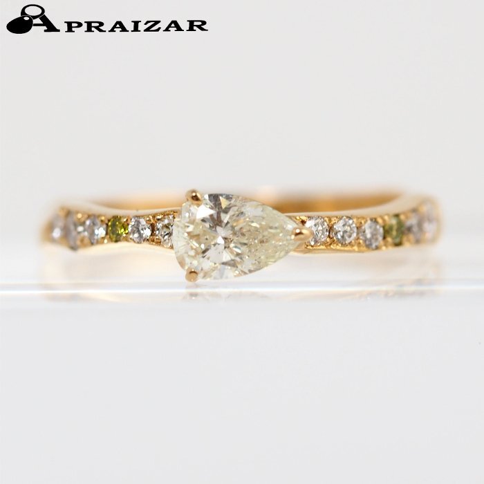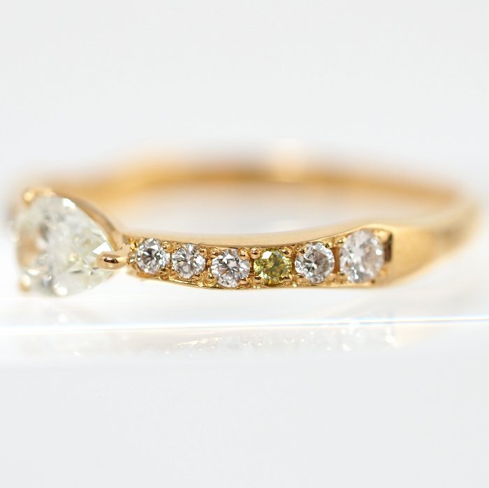素材 | K18イエローゴールド、ペアシェイプダイヤ0.388ct、ダイヤ0.15ct/0.02ct |