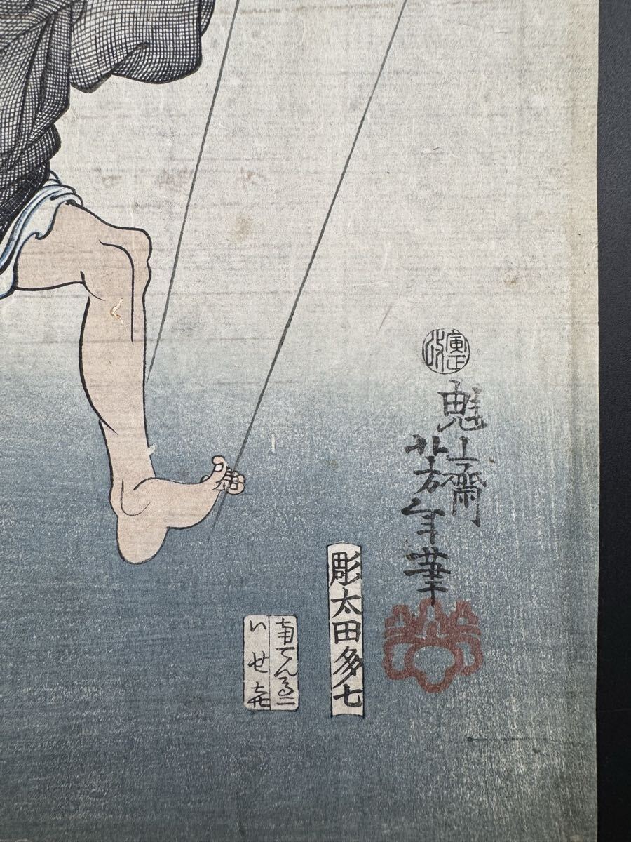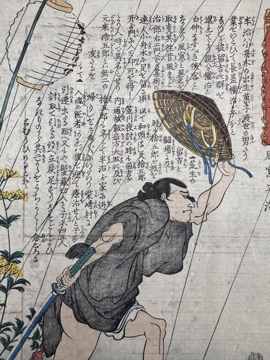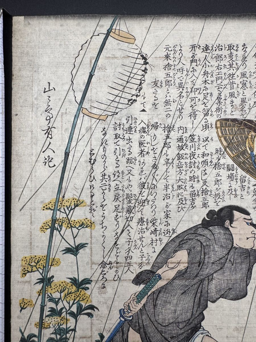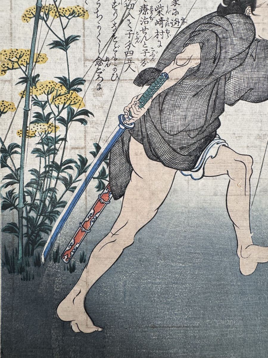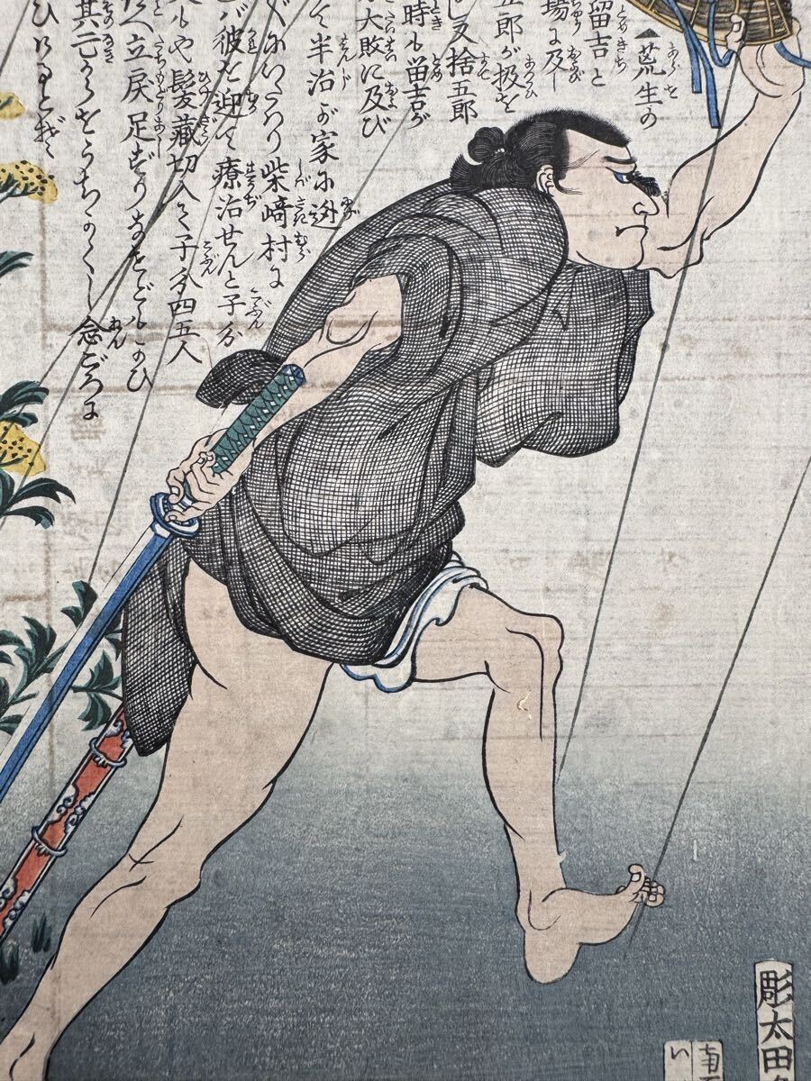 【真作】本物浮世絵木版画 月岡芳年「近世侠義伝 風窓半治」明治期 武者絵 錦絵 大判 保存良い