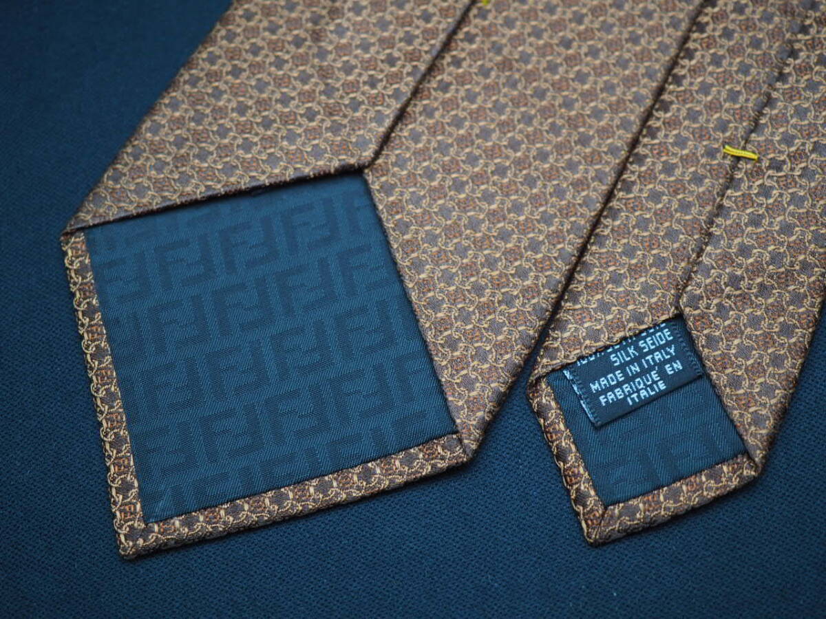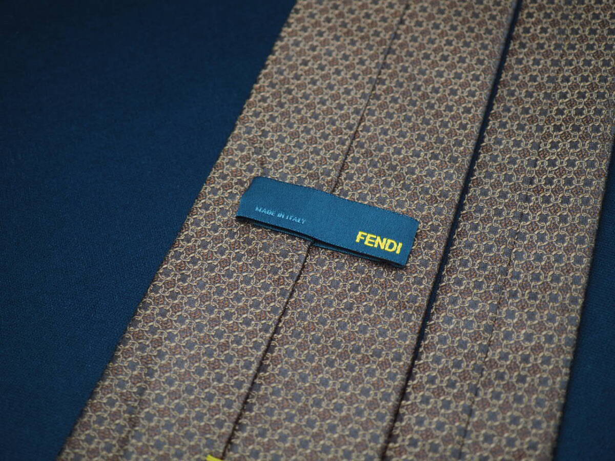 美品【FENDI フェンディ】 F2100 ブラウン系 SILK ブランド ネクタイ 古着 良品 転売 仕入