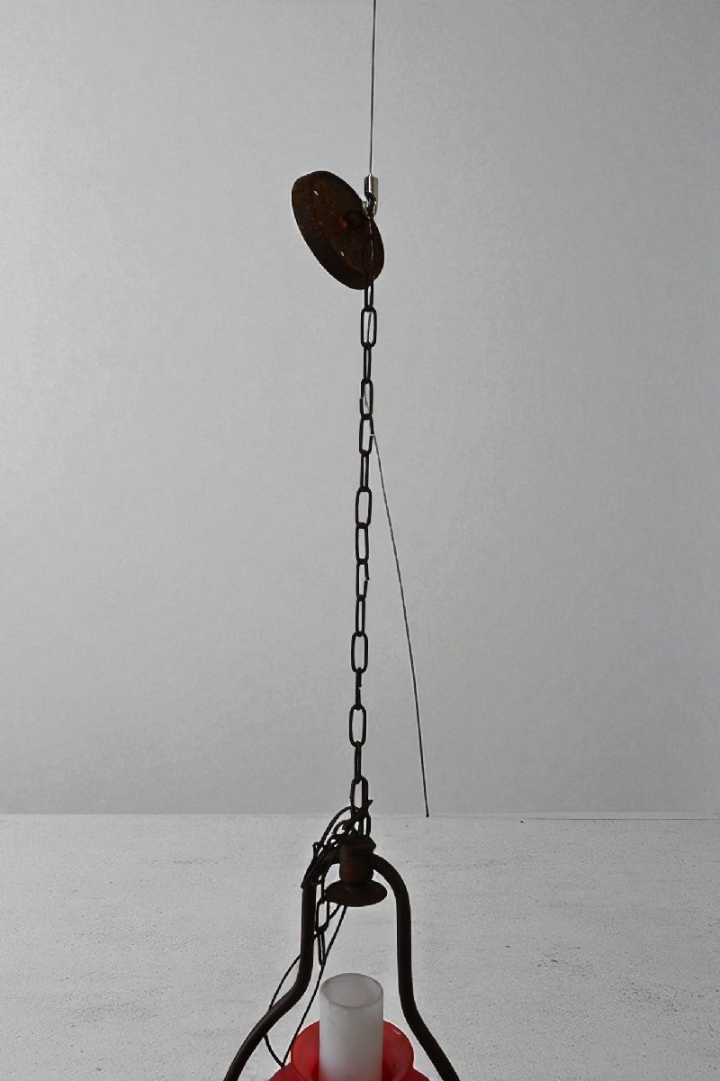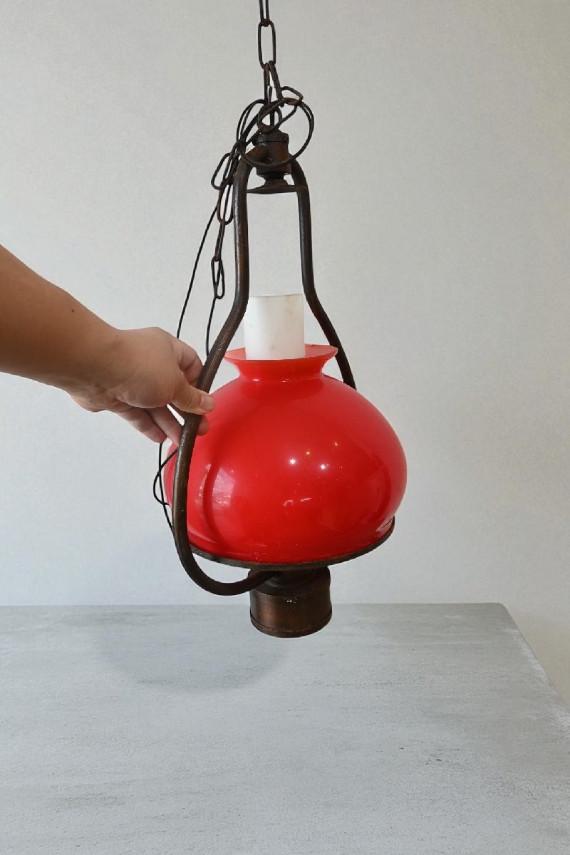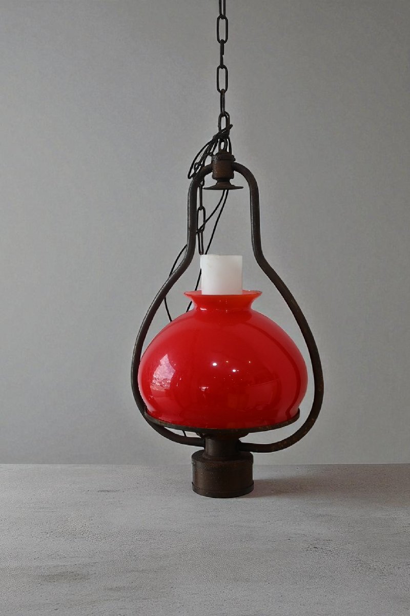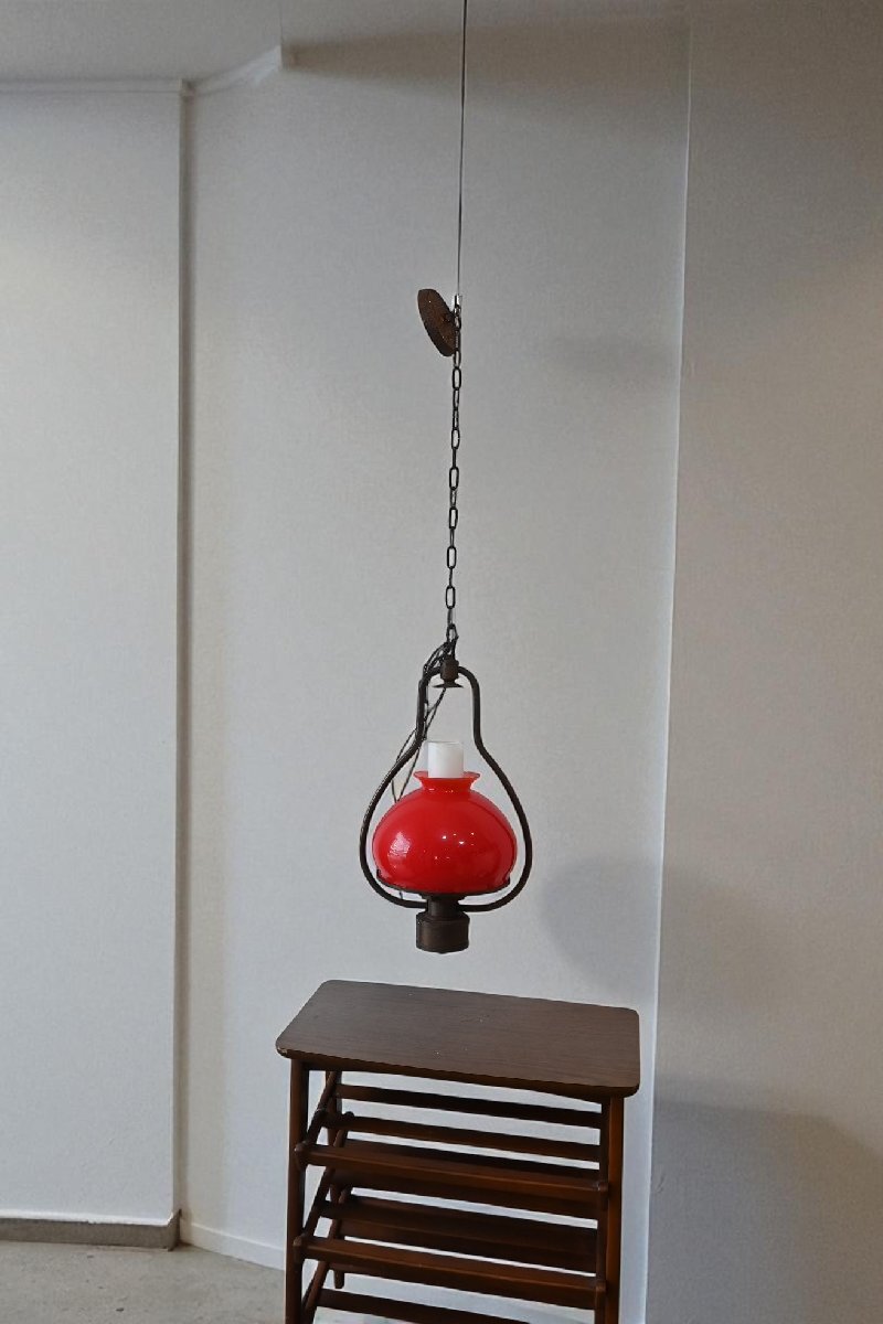 title:赤いホヤのランプ型の吊り照明 ランタン風 ガラス傘 ライト レトロ シャビー ヴィンテージ 古道具のgplus広島 2509i