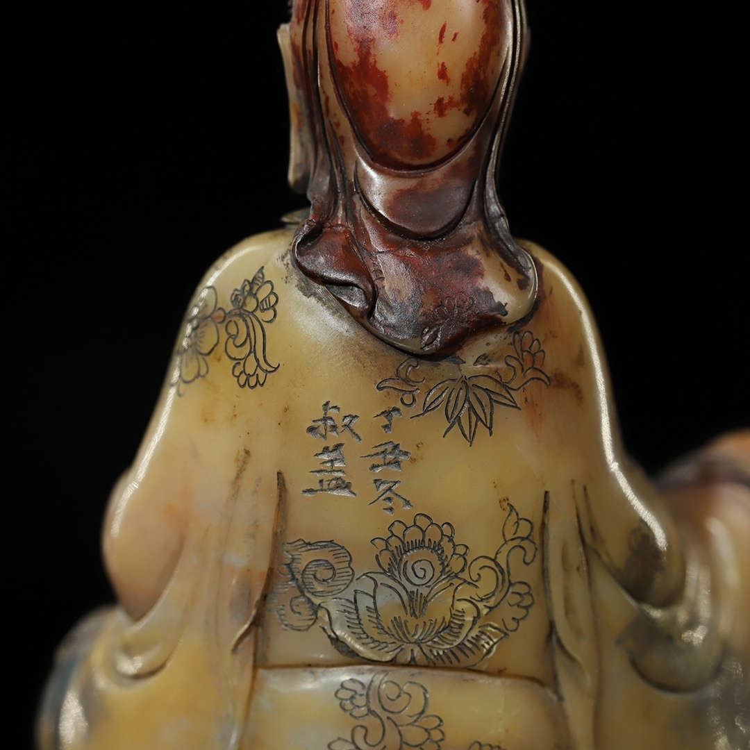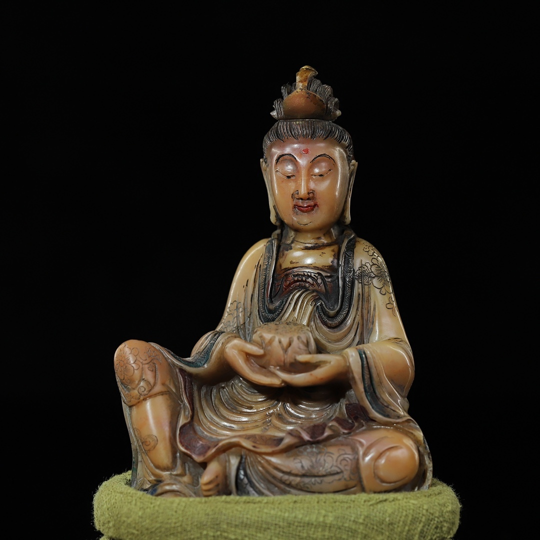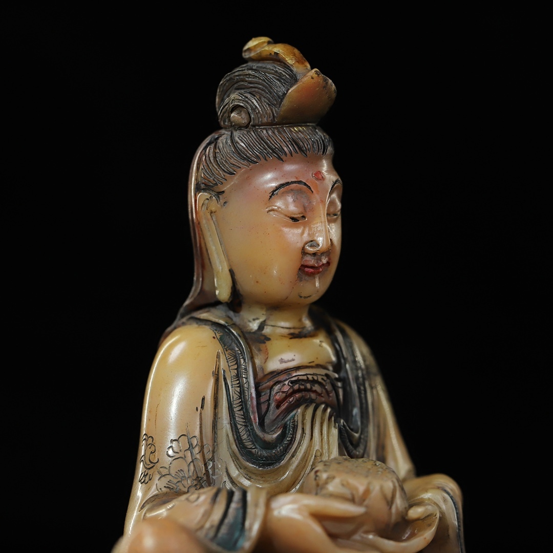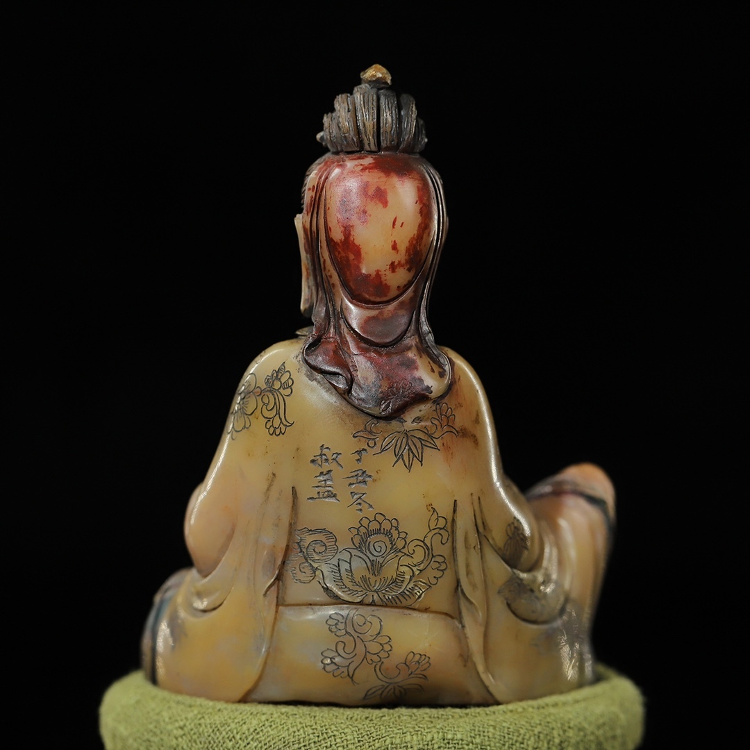 *珍品旧蔵* 【清代篆刻家 錢松 字:叔蓋】寿山石 觀音 仏像 置物 天然石 手彫 篆刻 極細工 中国古玩 骨董品 古美味 H49