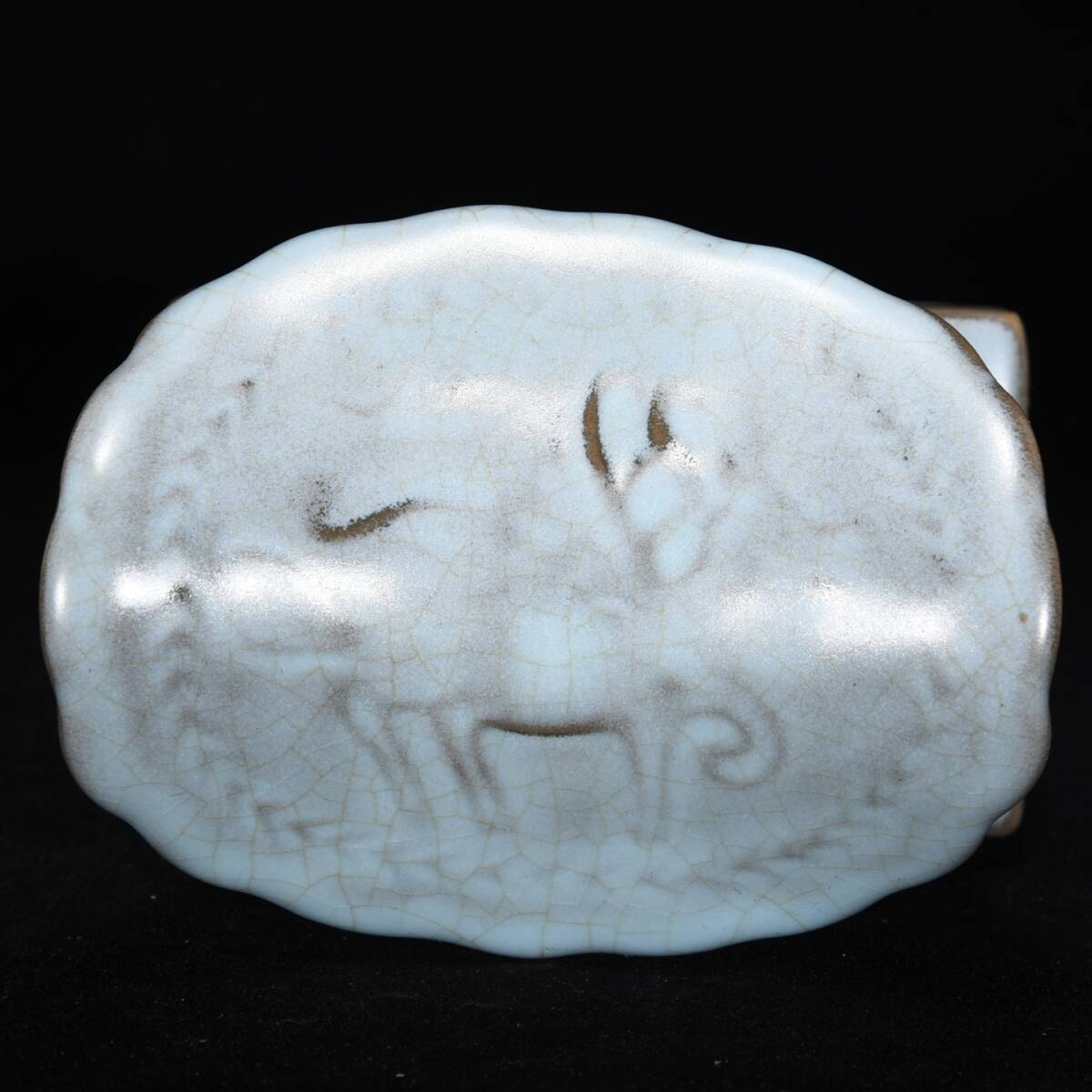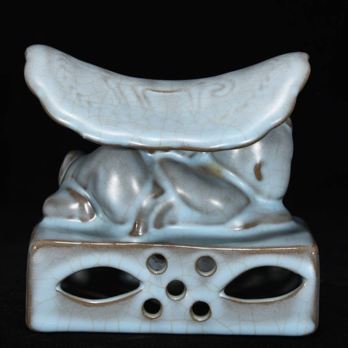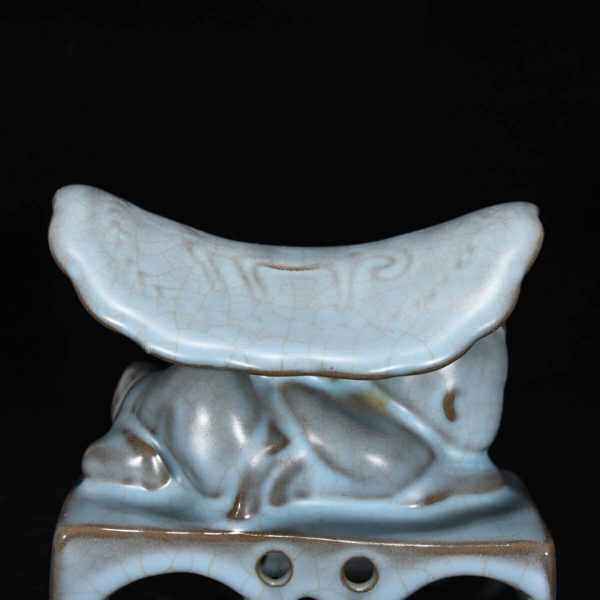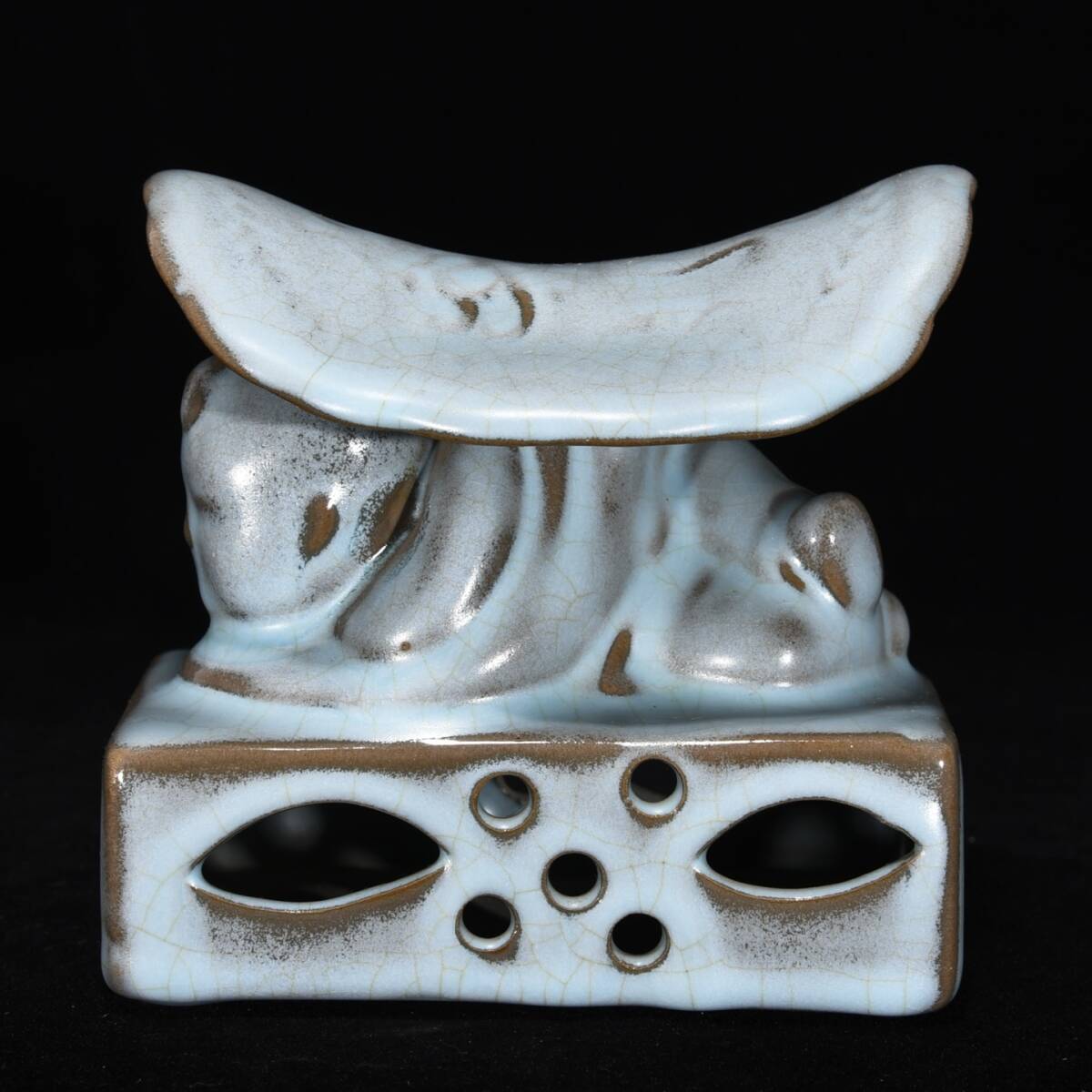 *珍品旧蔵* 宋 汝窯 童子頂荷葉枕 陶芸 古陶磁器 中国磁器 極細工 唐物 中国古玩 骨董品 古美味 H49