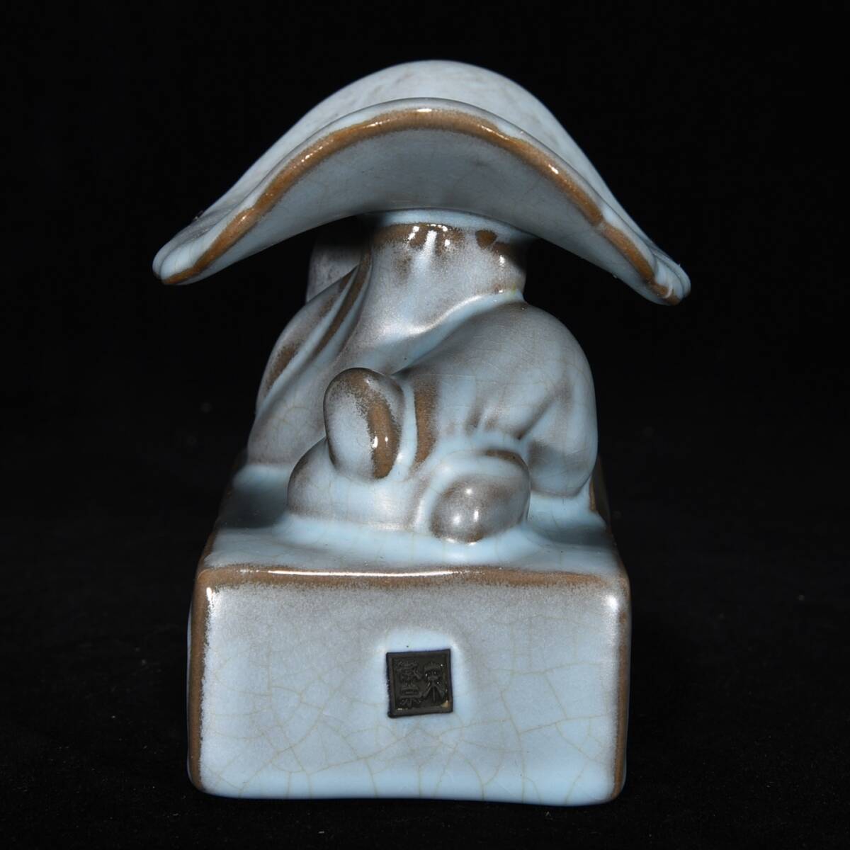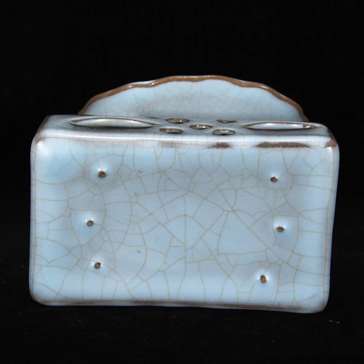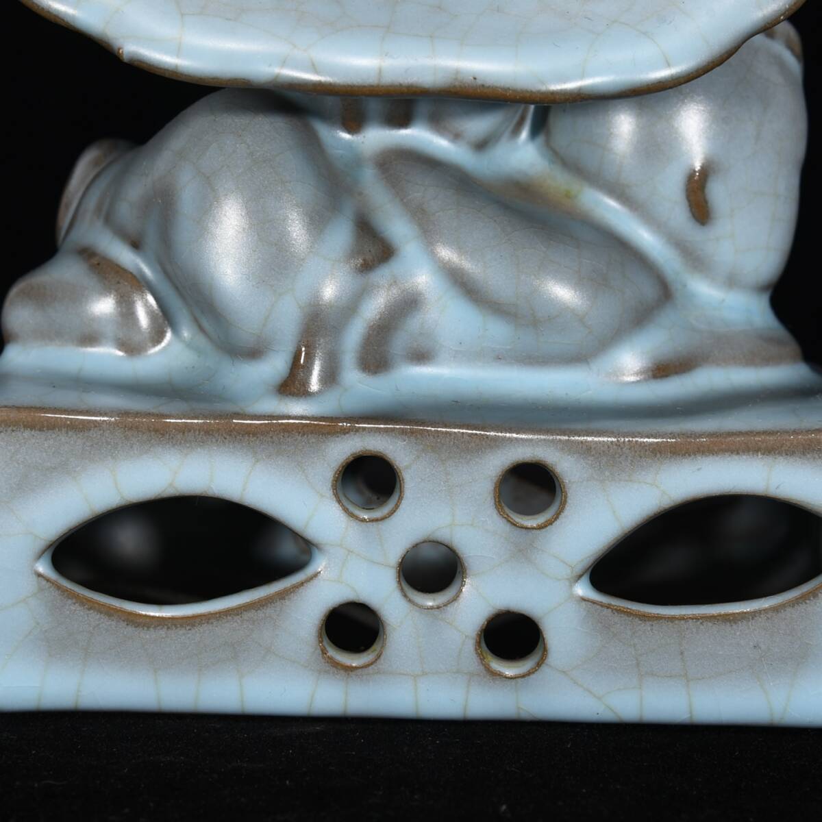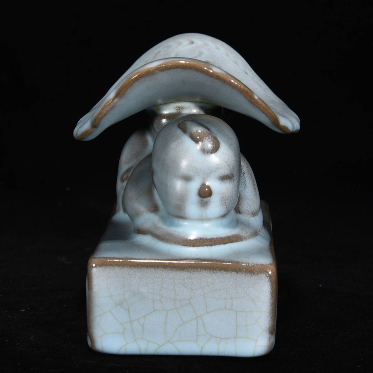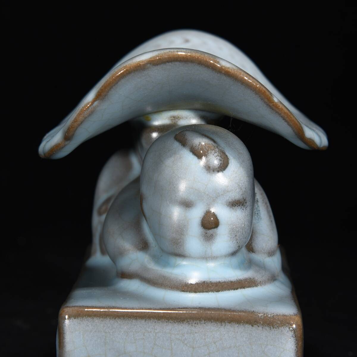 *珍品旧蔵* 宋 汝窯 童子頂荷葉枕 陶芸 古陶磁器 中国磁器 極細工 唐物 中国古玩 骨董品 古美味 H49