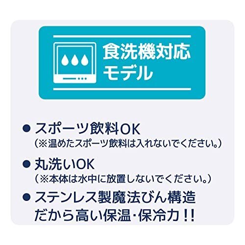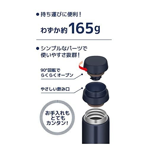 ブランド:サーモス(THERMOS)カラー:ダークネイビーサイズ:350ml説明●90°回転でらくらくオープン開閉時の煩わしさを軽減した新構造!●金属本体を含め、全てのパーツが食洗機対応●やさしい口当たりの樹脂製飲み口●ステンレス製魔法びん構造だから高い保温・保冷力●軽量・コンパクト設計●スポーツ飲料OK(※温めたスポーツ飲料は入れないでください。)●丸洗いOK(※本体は水中に放置しないでください。)90°回転でらくらくオープン開閉時の煩わしさを軽減した新構造!金属本体を含め、全てのパーツが食洗機対応