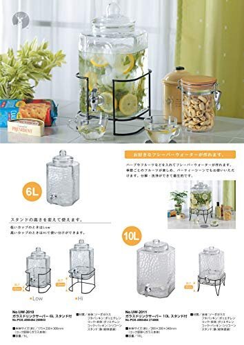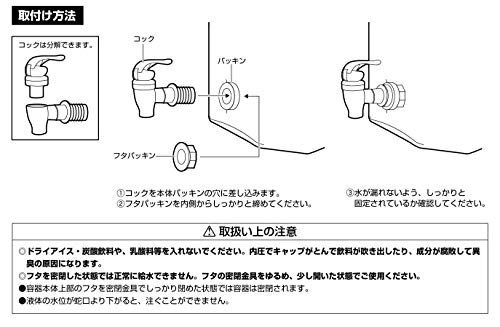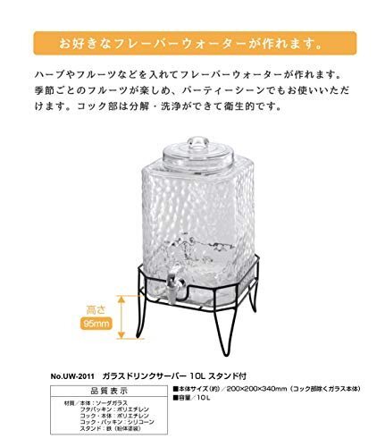 材質:本体/ソーダガラス、フタパッキン/ポリエチレン、コック・本体/ポリエチレン、コック・パッキン/シリコーン、スタンド/鉄(粉体塗装)