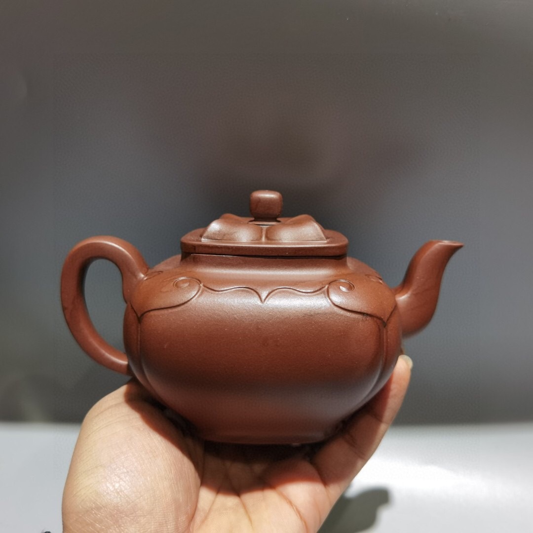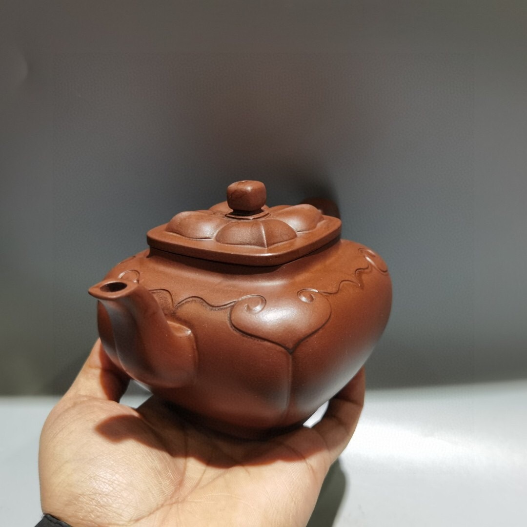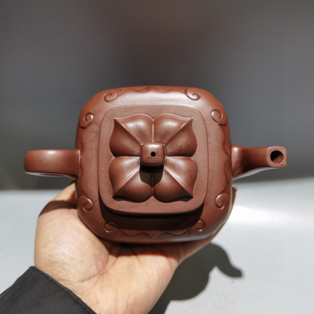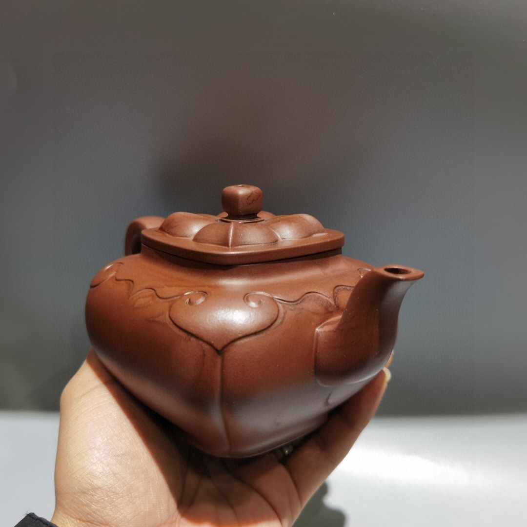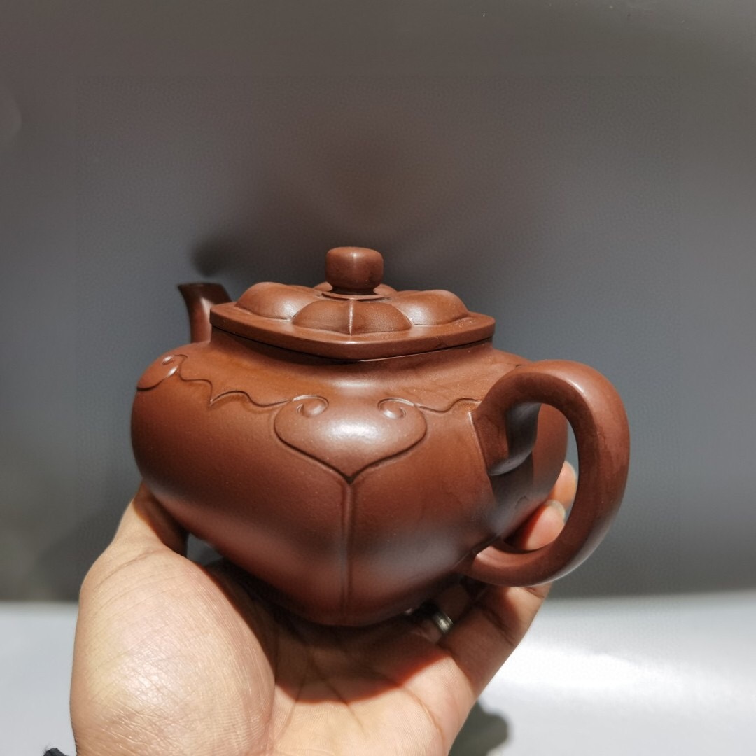 【超珍館蔵】紫砂壺 如意四方壺 金鼎商標款 紫泥 茶具 茶道品 置物 賞物 古賞物 古董品 古美術品 時代物 旧家蔵出 稀少珍蔵品