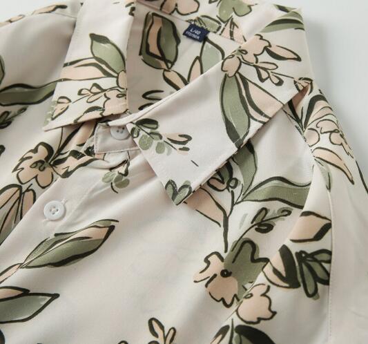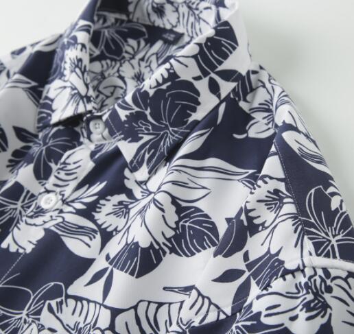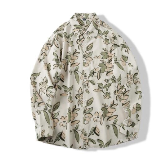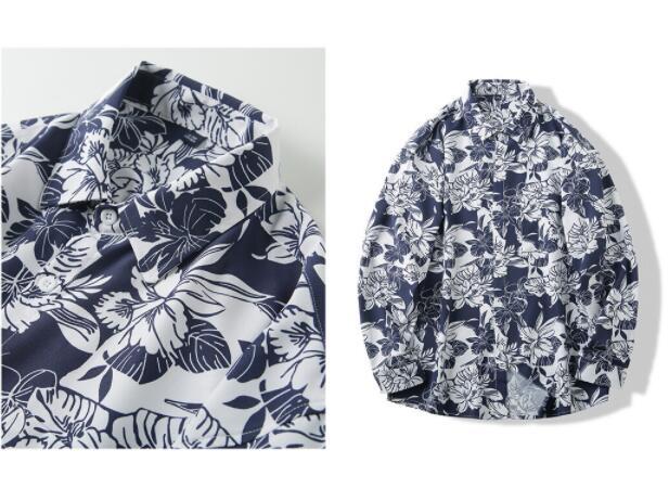 上質L ネイビー 新品 長袖シャツ アロハ リゾート風 ボタニカル柄 ゆったり 涼感 快適 軽やか 通気 夏秋 メンズ カジュアル トップス