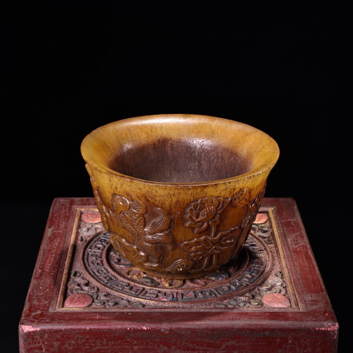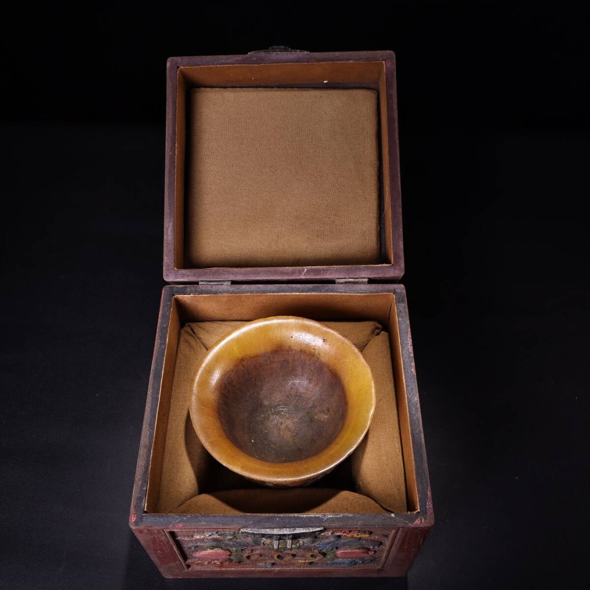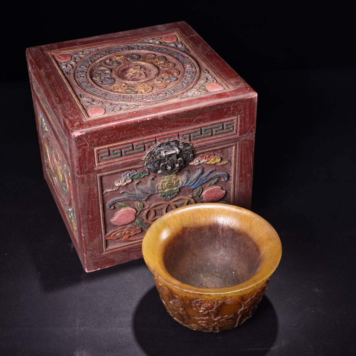 【超珍館蔵】角材細密彫 連年有餘紋 茶碗 箱付 置物 賞物 古賞物 古董品 古美術品 時代物 旧家蔵出 稀少珍蔵品