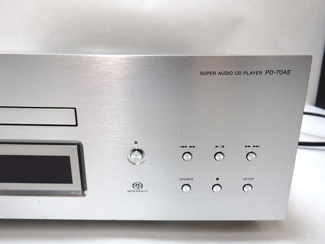 圧倒的なディスク読み取り精度と重量級静音制振ドライブメカニズム搭載 静音・安定感抜群のアルミ製ディスクトレイ 圧倒的な高S/N、ローノイズ化を可能にする768kHz/32bit対応ツインDAC搭載 D/A変換から出力までノイズを極限まで抑える、フルバランス回路を搭載 高音質カスタム電解コンデンサー搭載 徹底して高音質にこだわったオーディオ基板 再生可能メディア/フォーマット ・CD:音楽CDフォーマット、SACDフォーマット ・SACD:○(2チャンネルエリア) ・CD-R/RW:MP3/WMA/AAC ・DVD-R/RW:WAV/FLAC/AIFF/ALAC/MP3/WMA/AAC/DSD ・DVD+R/RW:WAV/FLAC/AIFF/ALAC/MP3/WMA/AAC/DSD アナログ音声出力 ・出力端子:RCA端子 ステレオ1系統(金メッキ)、XLR端子 ステレオ1系統(金メッキ) 電源・電圧:AC100V、50Hz/60Hz 消費電力:38W 待機時消費電力:0.3W 外形寸法:435mm(W)×142mm(H)×413 mm(D) 質量:19.6kg 【中古品】 外観に傷や汚れがあります。SACD/CD再生・動作確認済み。電源コード(社外品)のみ付属します。 2017年製 別途:その他、いろいろ出品しています |