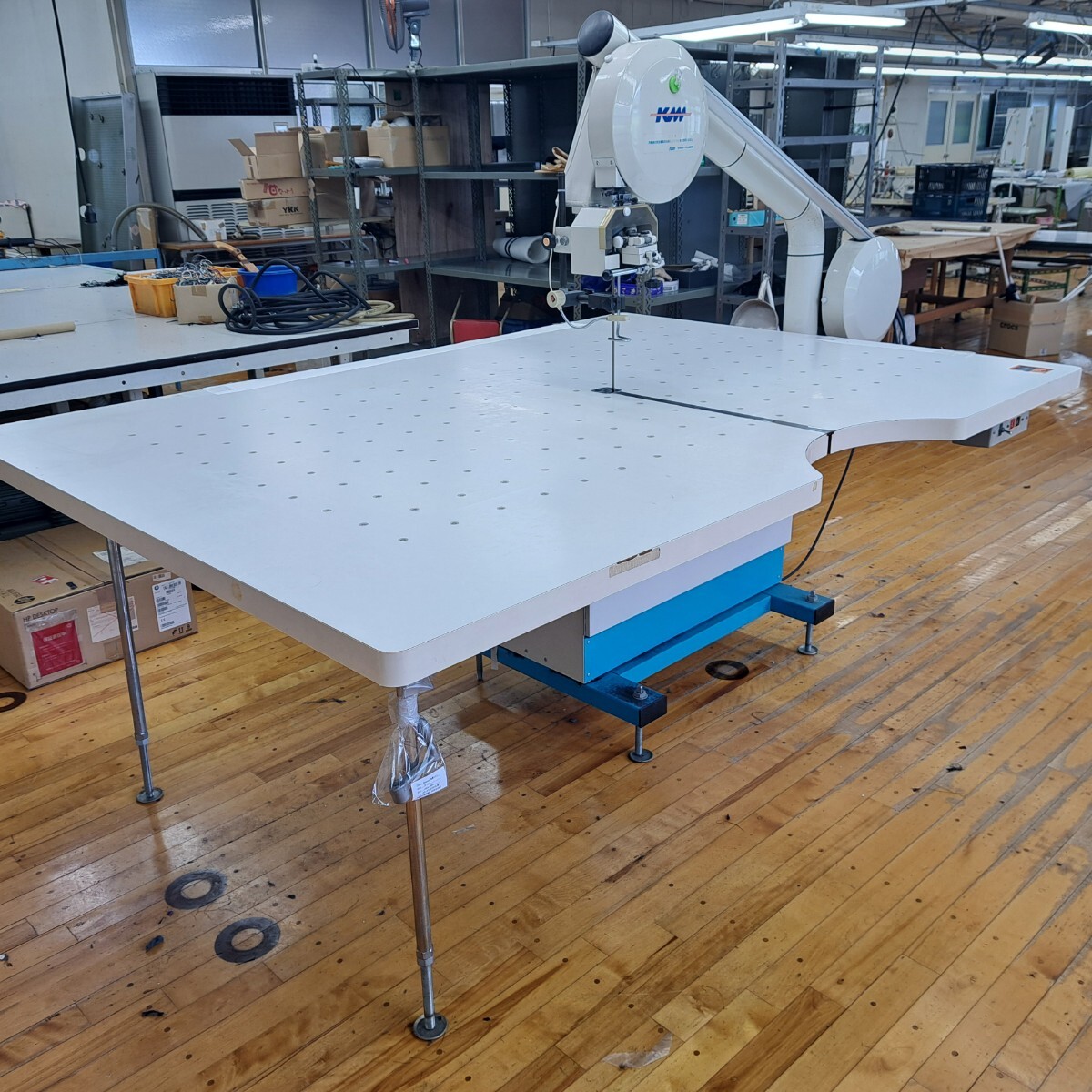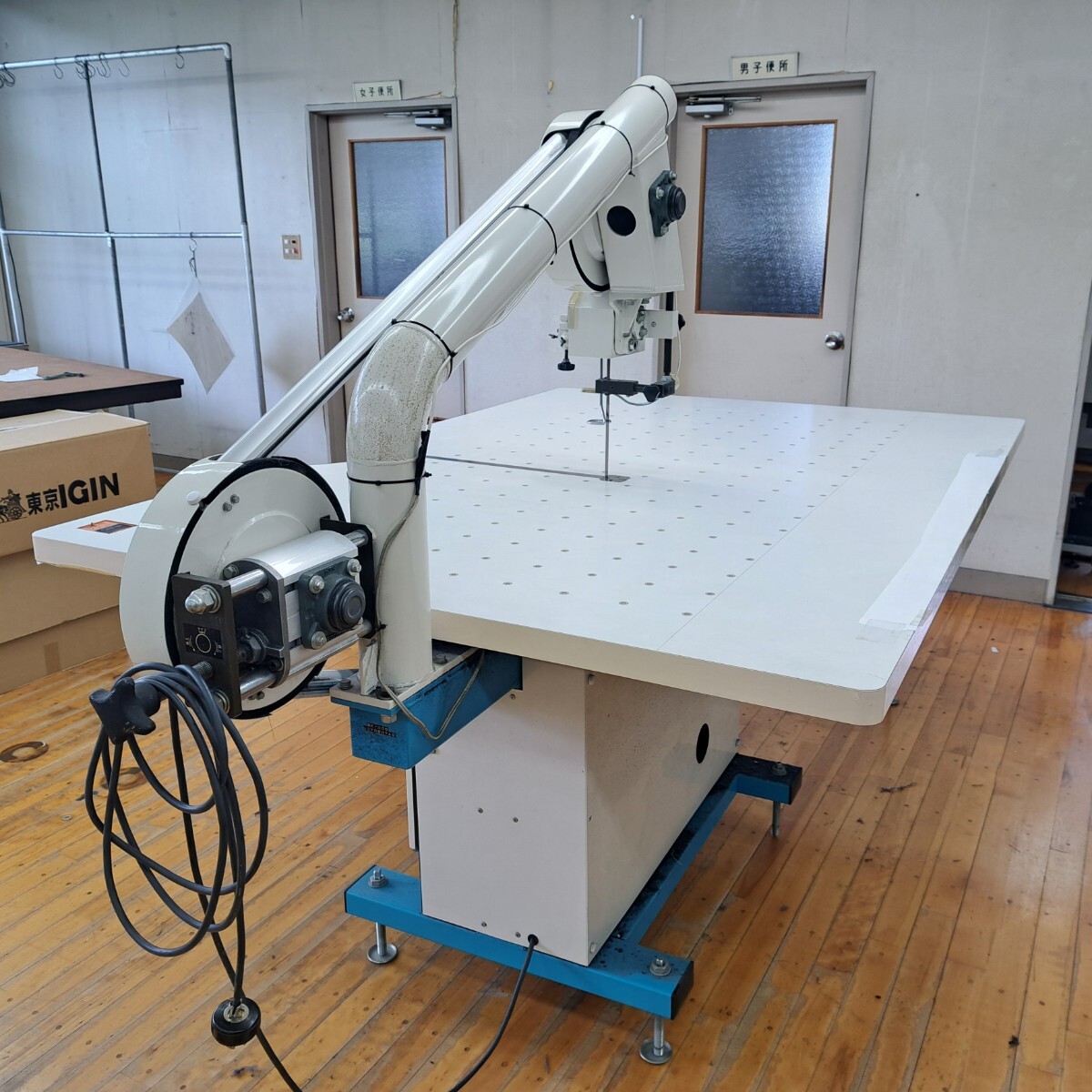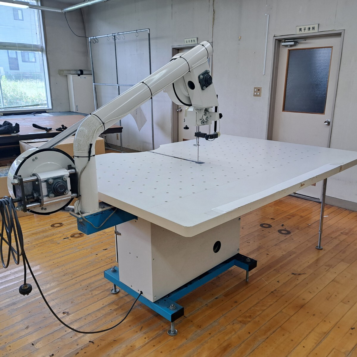 ●裁断、裁断機、バンドナイフ、Km裁断機、ケーエム裁断機、Km、バンドナイフ裁断機Km BK-900N エアーテーブル、電源三相200V、作動良好、で御座います。