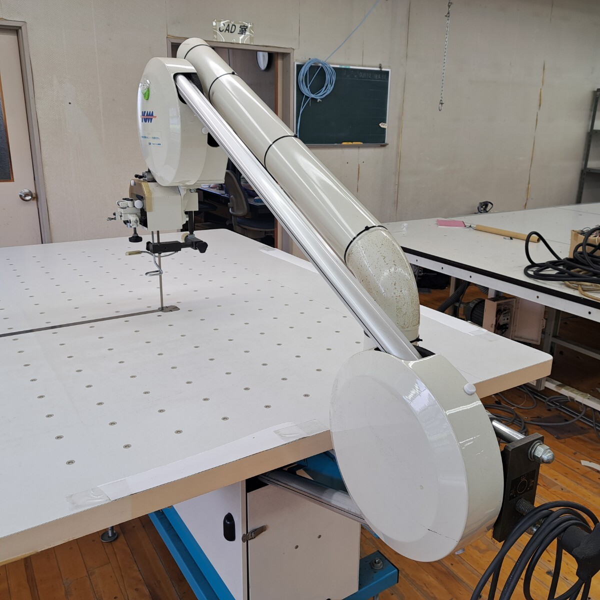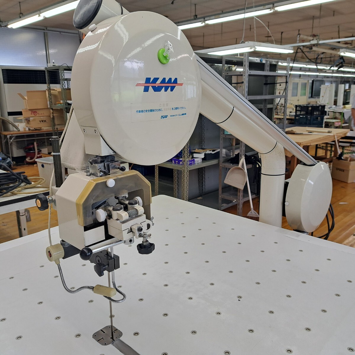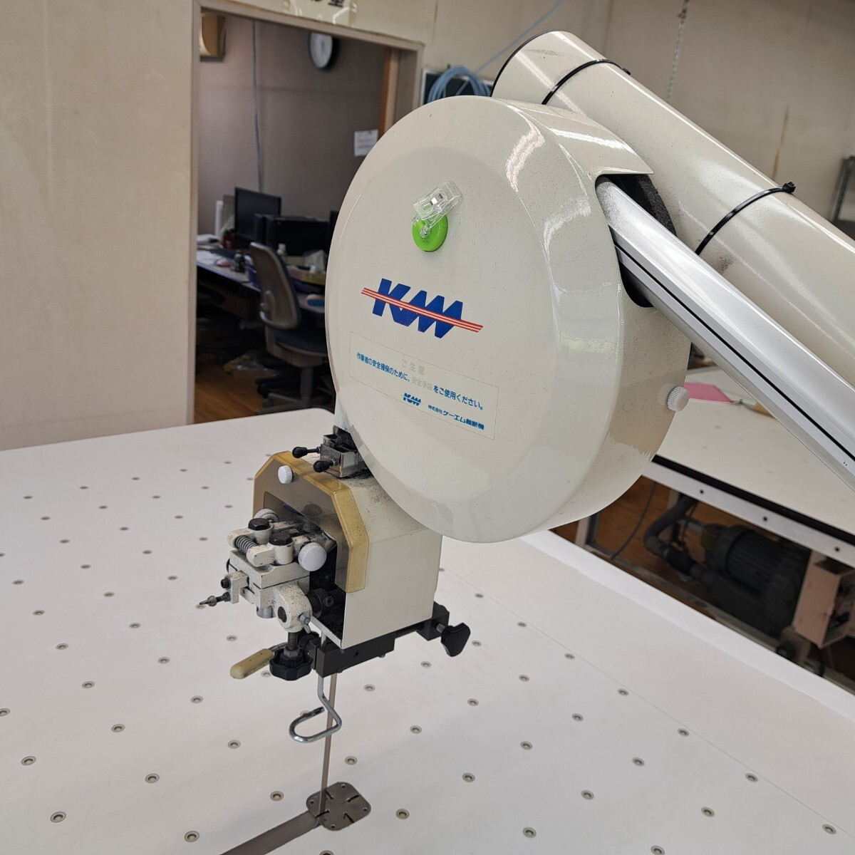 ●裁断、裁断機、バンドナイフ、Km裁断機、ケーエム裁断機、Km、バンドナイフ裁断機Km BK-900N エアーテーブル、電源三相200V、作動良好、で御座います。
