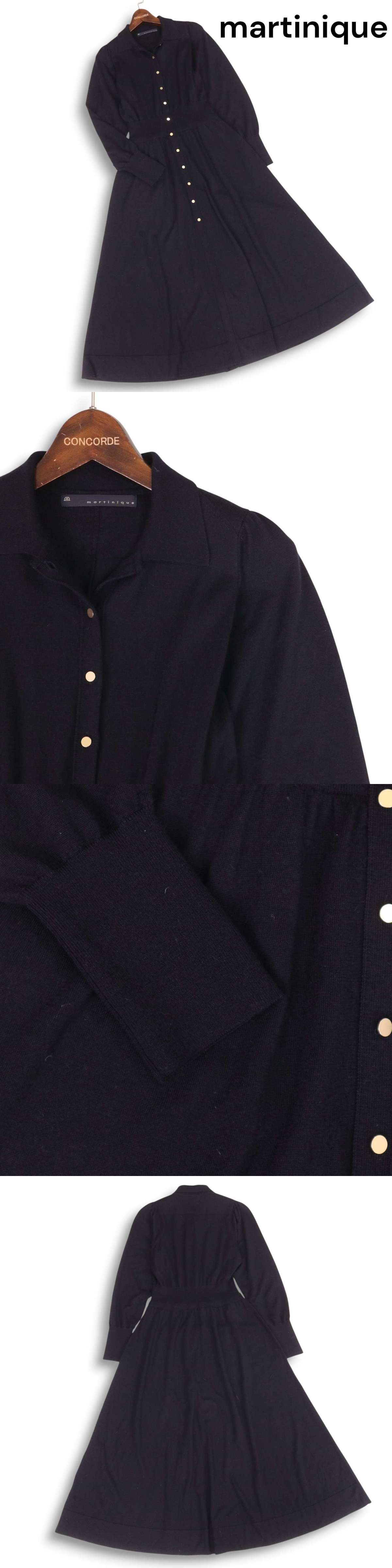 martinique マルティニーク 秋冬 ウール100%★ ニット シャツ ワンピース ロング Sz.F レディース 紺 ネイビー
