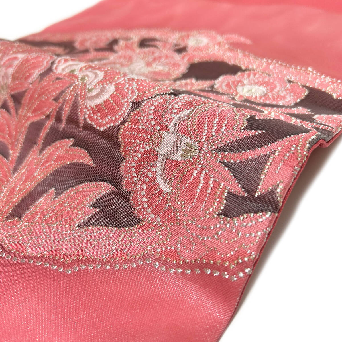 九寸名古屋帯 引箔 金銀糸 正絹 唐花 お太鼓柄 可愛い ベリーレッド セミフォーマル~ 仕立て上がり MWR-No.272 09092025 マダム 和装