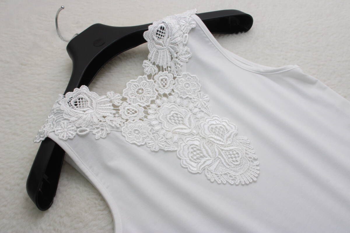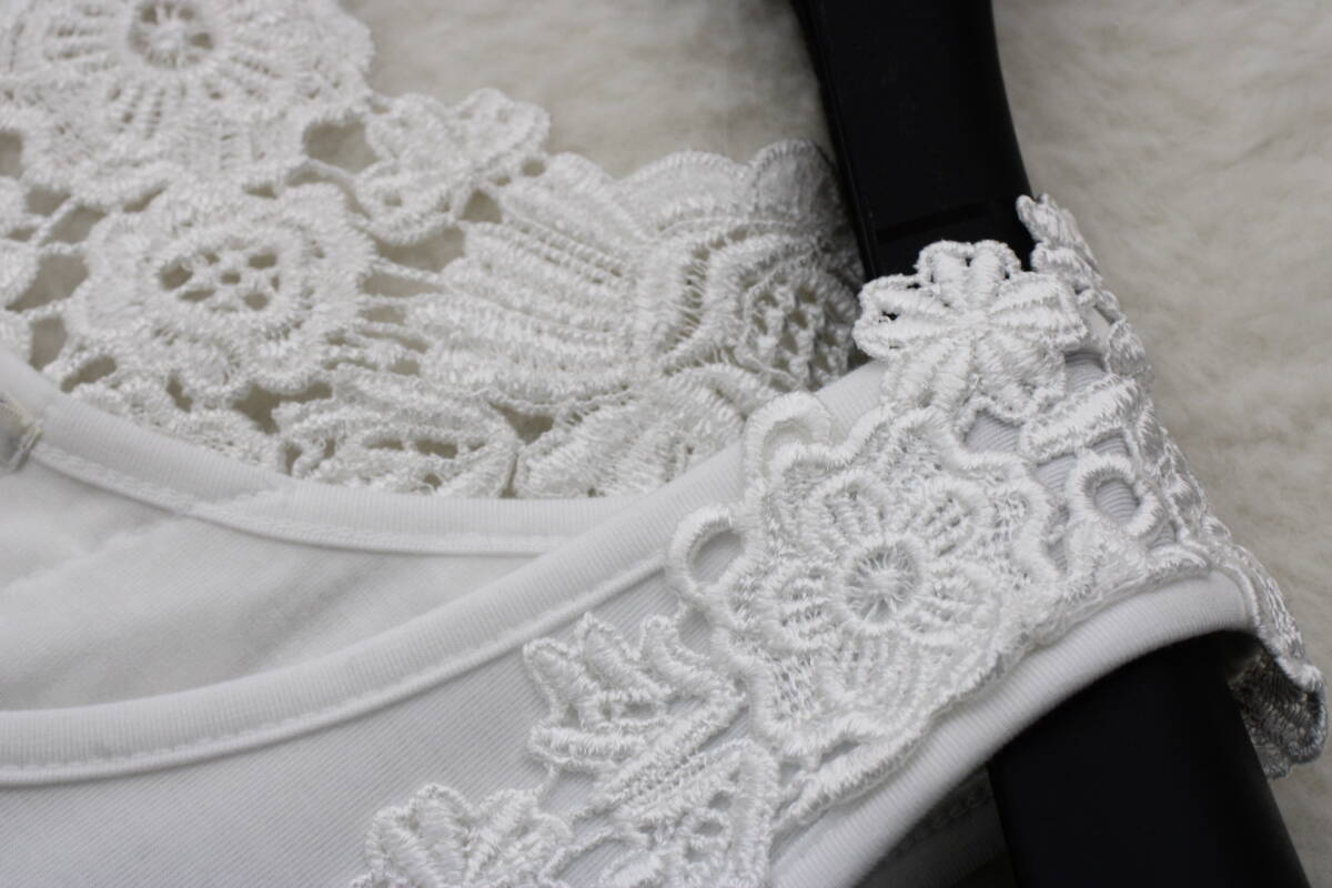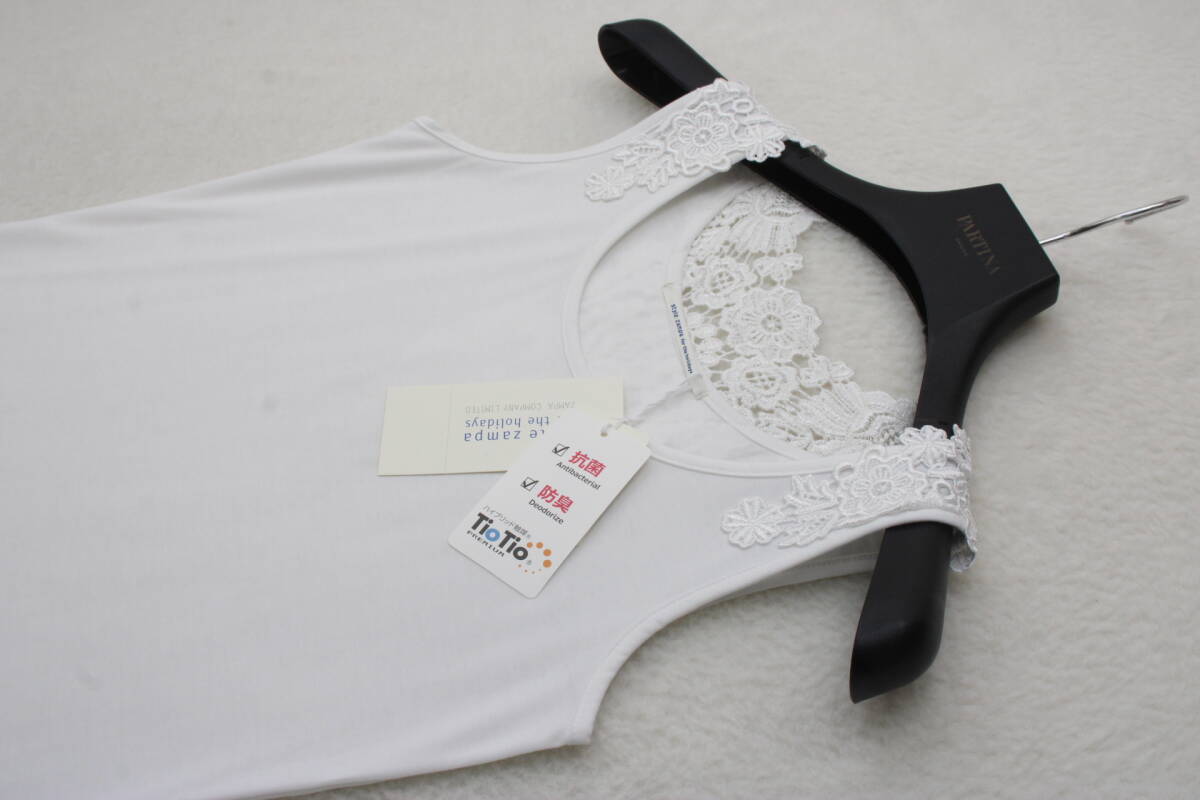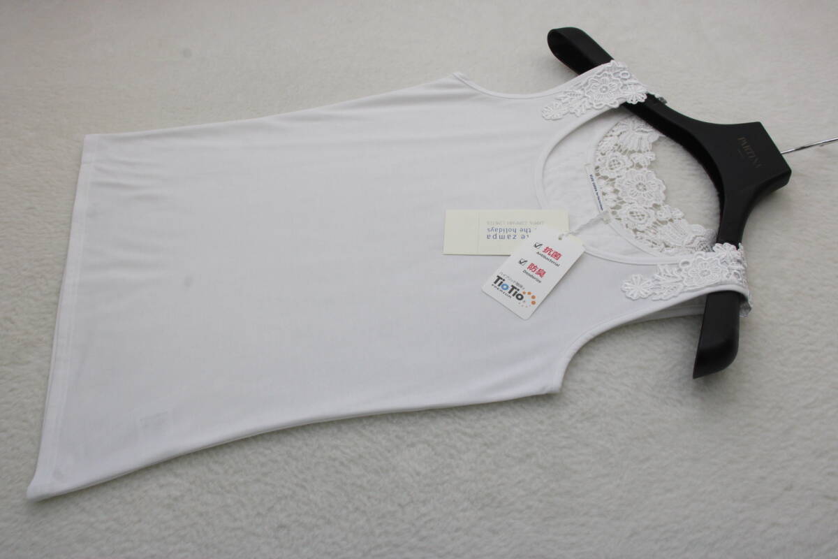 3369 新品タグ付き 抗菌・防臭レース切替タンクトップ ホワイトM