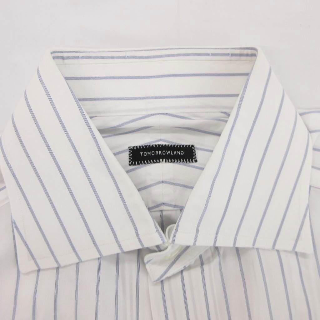 トゥモローランド TOMORROWLAND ワイシャツ 長袖 ストライプ 38/15 白 ホワイト 青 ブルー /JS ■YHS2 メンズ