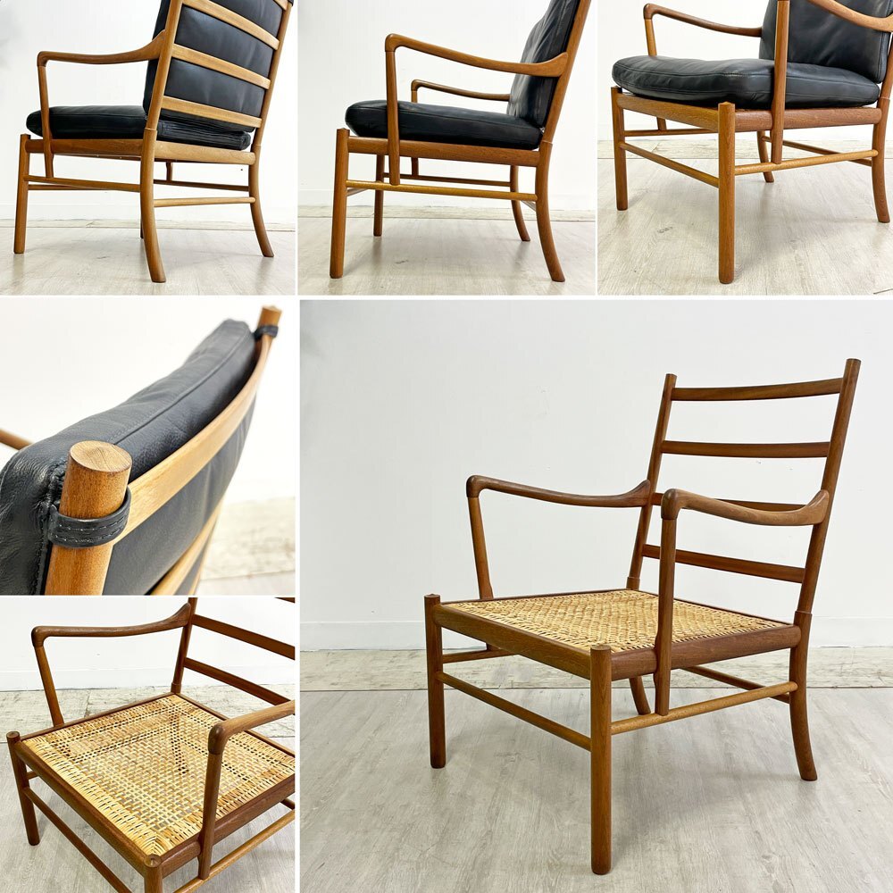 コメント | 北欧デンマークを代表する家具デザイナー、オーレ・ヴァンシャー。 機能的且つ優美なデザインスタイルで知られ北欧家具黄金期の世界的人気を支えました。 1949年にデザインされたこのコロニアルチェアは同氏の代表的名作。 1700年代の英国家具、そしてコロニアル時代にインスピレーションを得た優雅な雰囲気とモダンな佇まいが魅力の一脚です。 細身ながら高い耐久性を作り出すフレームの構造。肘掛けは優美な曲線を描きその先端で真下に流れていきます。 丸レッグは真下に伸びる前脚と対照的に、後ろ脚を少しカーブさせる事で、椅子全体に安定感を加え、傾斜した背もたれによる荷重に耐える構造。また全体のシルエットにも変化を加えています。 ラタン特有のテンション感と心地よい本革のクッションによる快適な座り心地も名作たる所以と言えます。 クラシカルとモダンが融合した色褪せない魅力を放つ北欧の名プロダクトです。 ※当ショップは、主にリサイクル品を取り扱っております。基本的にUSED品である事をご理解頂き、ご入札をご検討下さいませ。 |