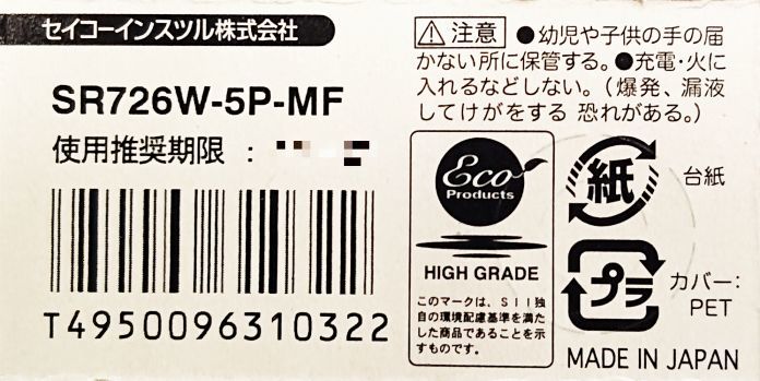「SR726W」は大電流用の電池で、主に大電流を必要とするアラーム機能やライトなどの機能が付いている時計に適しています。(デジタル時計、アナログ×デジタル時計など)