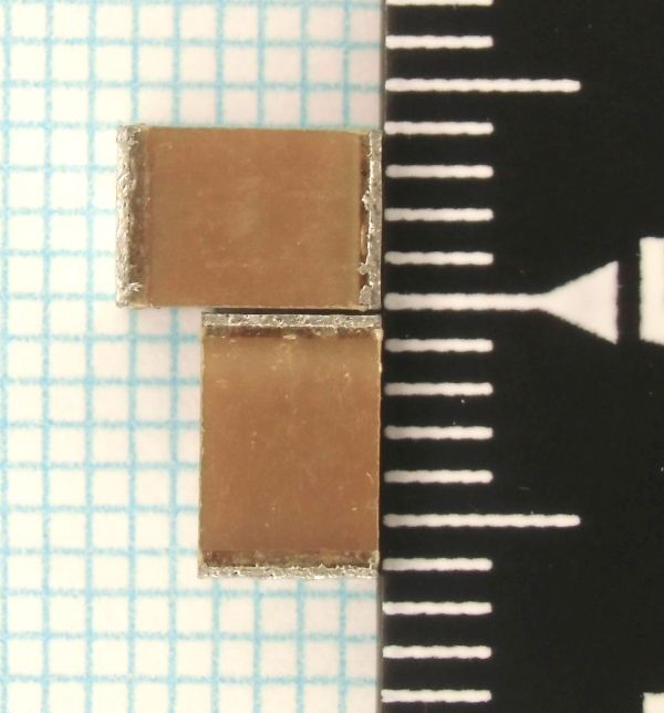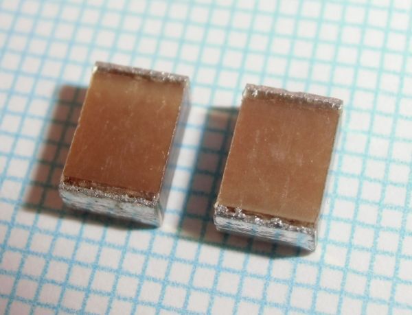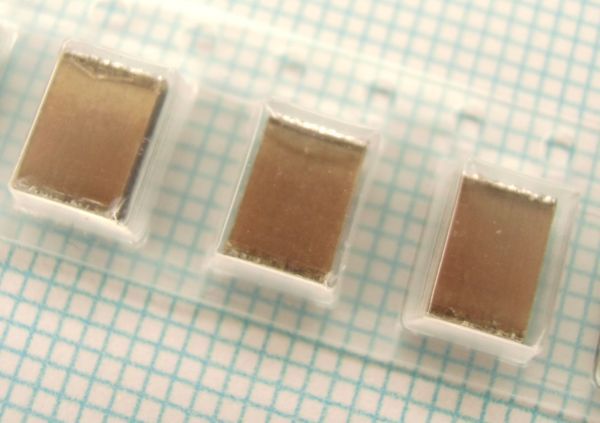 ECHU(C)シリーズ 100V 0.047uF±5% 型番:ECH-U1473JC9(詳細データはこちら)です。 ※ワケアリ品です!※ 内容:はんだ面と本体外装の接合が一部剥離しています。酸化ないし経年劣化によるものと想像します。 静電容量は1000個中10個ほど抜き取りして簡易チェックしてあります。 剥離の程度については画像参照をお願いいたします。 サイズは長さ6.0mm x 幅4.1mm x高さ2.4mmの表面実装6041チップサイズです。 表面実装用品ですがそれなりに大型です。通常のランドサイズのユニバーサル基板にはんだする場合は横でランド2個分、縦で3個分程度が必要になるかと思います。 積層セラミックコンデンサは勿論のこと、オーディオ用のフィルムコンデンサと比較しても 低損失・低ESR・低誘電吸収・安定した温度特性と周波数特性という極めて優れた特徴を持ちます。 特に高周波について極めて優秀な特性を持つため、オーディオ回路のローパスフィルタやトーンコントロール回路に推奨いたします。 ※他のフィルムコンデンサやスチロールコンデンサ同様、はんだ時の超高熱に非常に弱い電子部品です。実装時に御注意ください。 なお、お求めの個数に応じて、 8個・100個セットを出品しております。個数が多いほど単価を安くしてありますので、是非御検討ください。 只今の在庫:4セット ★ 他に出品中の電子部品系も同梱可です。 |