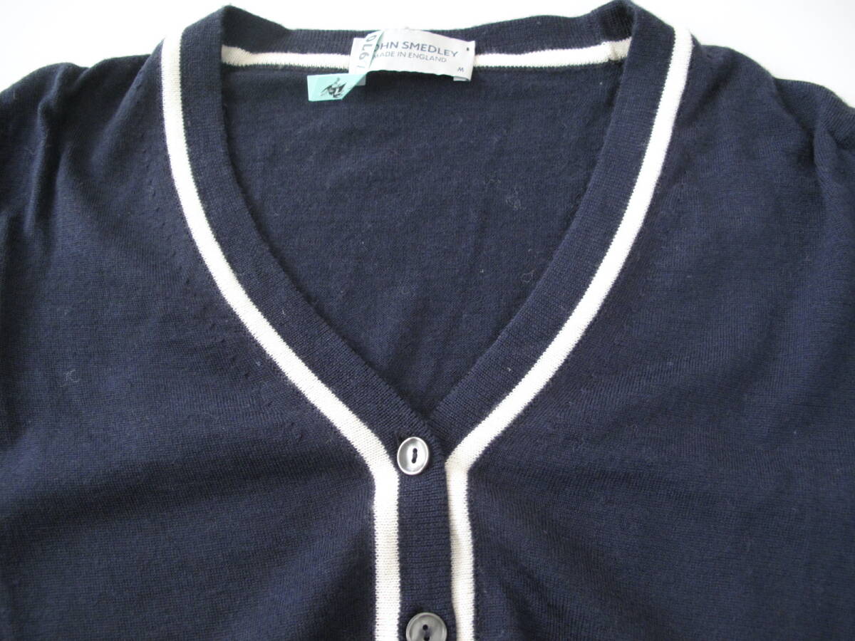 商品名*** ジョン スメドレー 長袖カーディガン 紺白 状態***中古 説明*** ジョン スメドレー 長袖のカーディガンです。 紺に白のラインです。 何度か洗濯している中古ですので 着用感はなんとなく有ります。 目立つような汚れはございません。 クリーニング済です。 畳んで保管・梱包しますので 畳みシワはご容赦ください。 サイズ:M(実寸からS相当です) 実寸 平置 約 肩幅 34cm 袖丈 63cm 脇下の身幅 44cm 着丈 55cm 素材: ウール 100% |