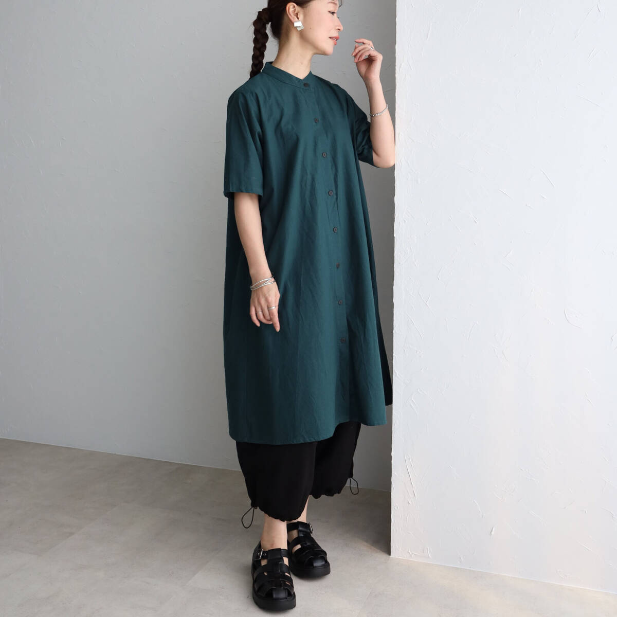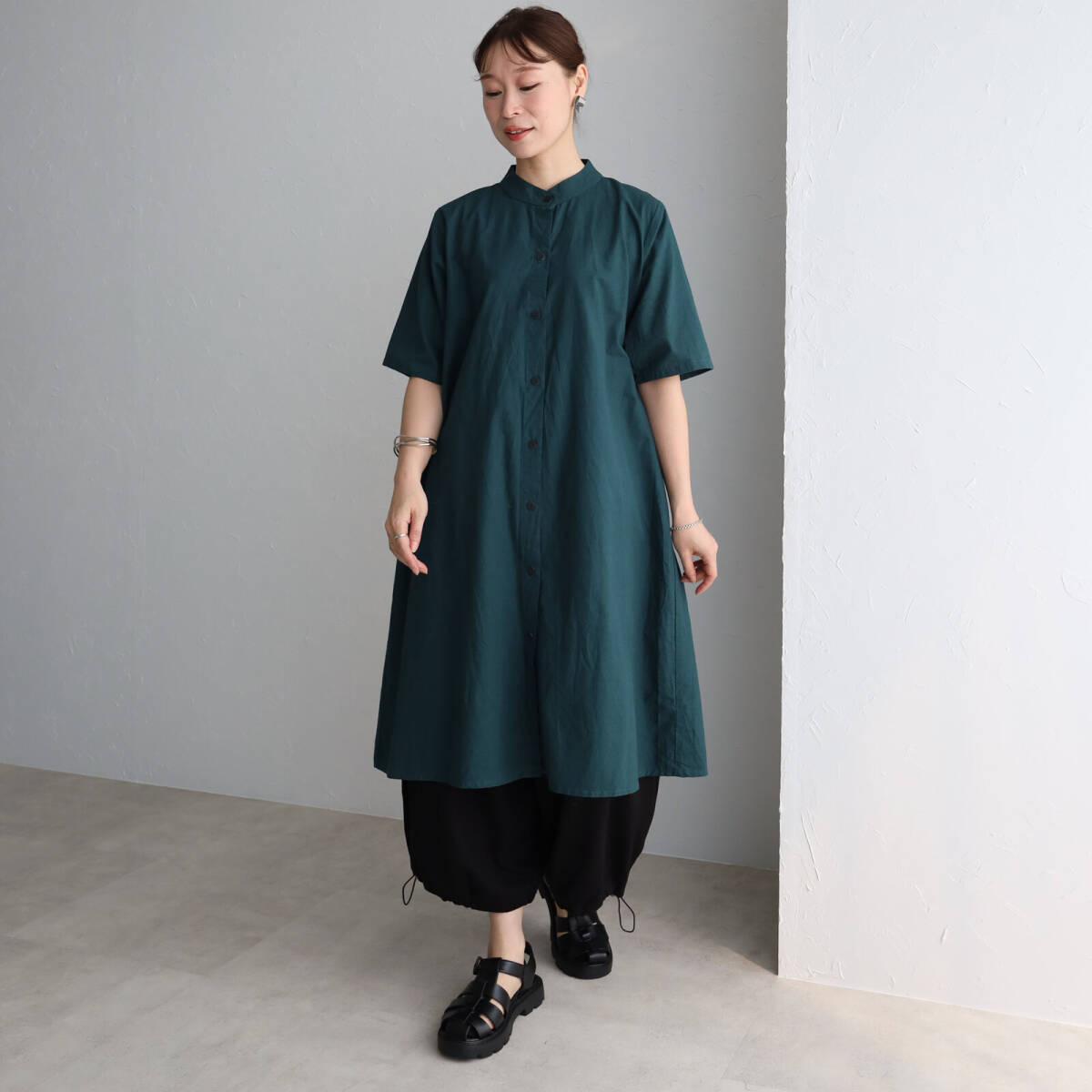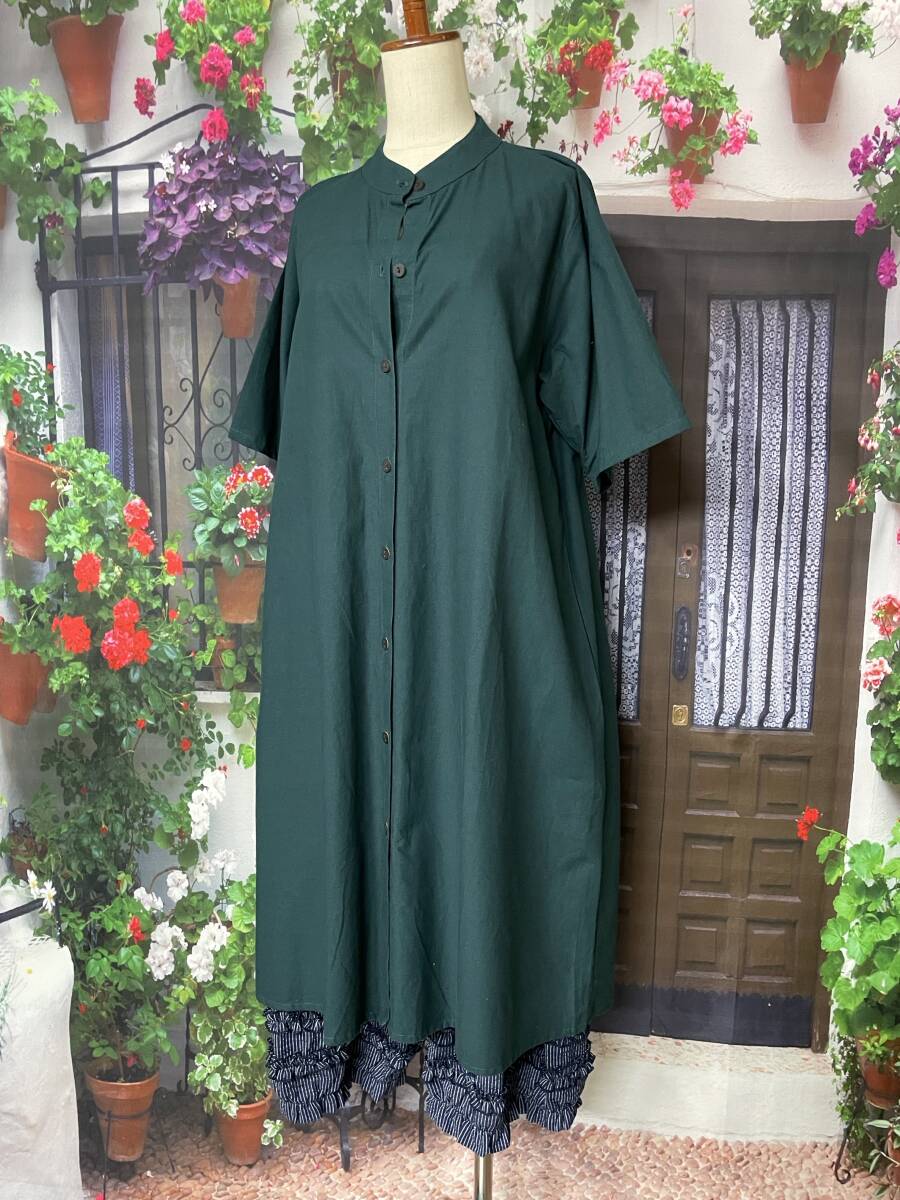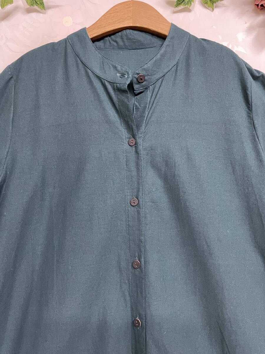 ●綿100、スタンドカラーのシャツワンピースです。