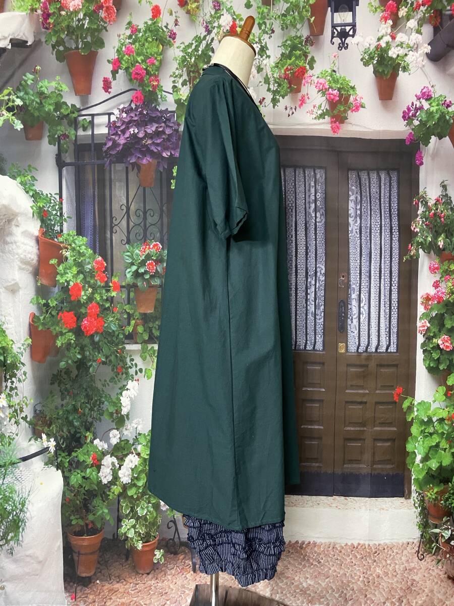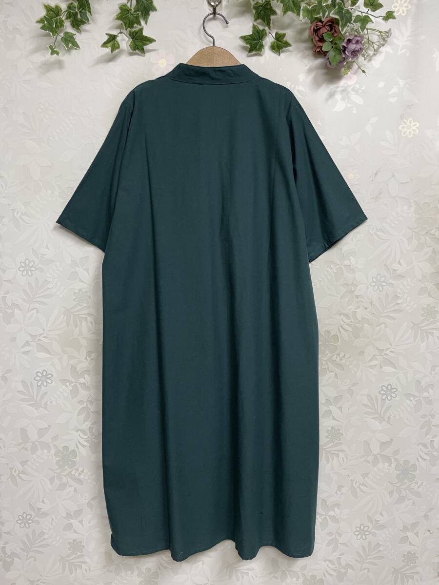 ★新品 綿100 スタンドカラー シャツワンピースM~L(GR)