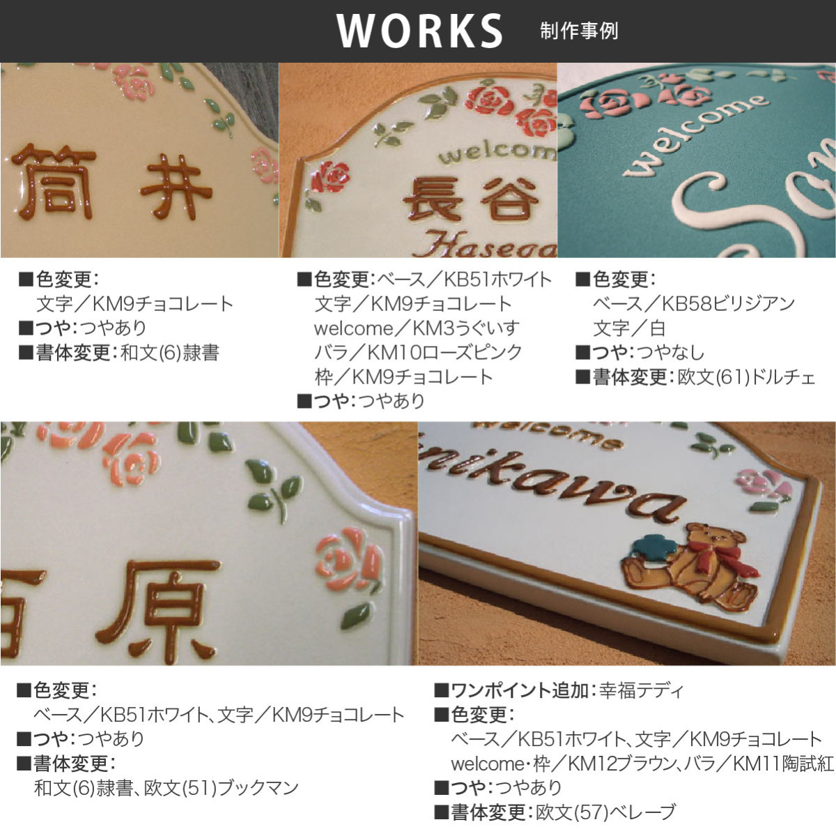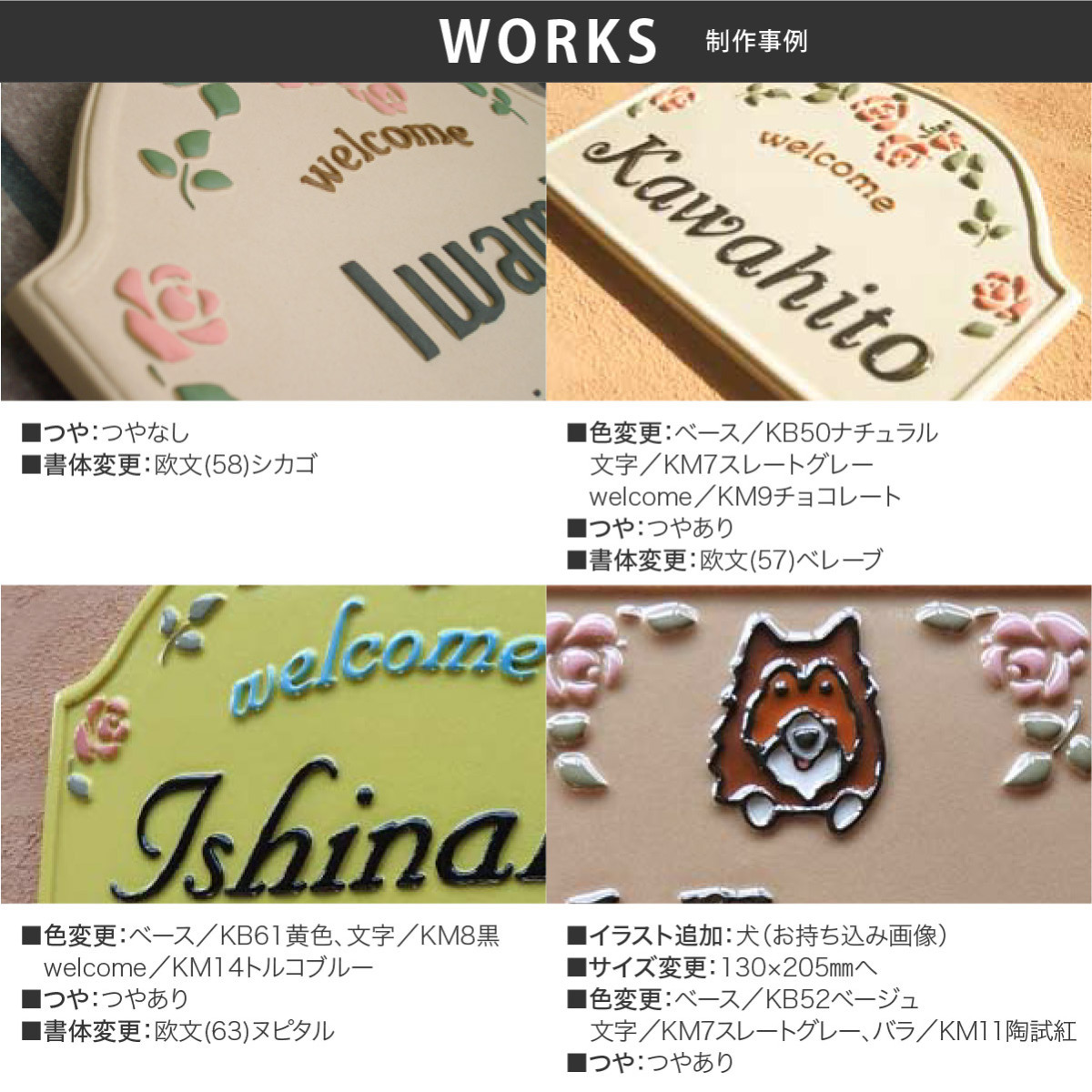 | 商品詳細 | 季節の彩りを取り入れたガーデニングシリーズ。カラーやサイズ、つやの有無など、お客様のお好み次第で変更出来ます。バラのアーチが華やかな表札です。縁起の良い浮き出し文字(凸文字)表札は全国でも珍しく、川田美術陶板ならではの技術です。 |